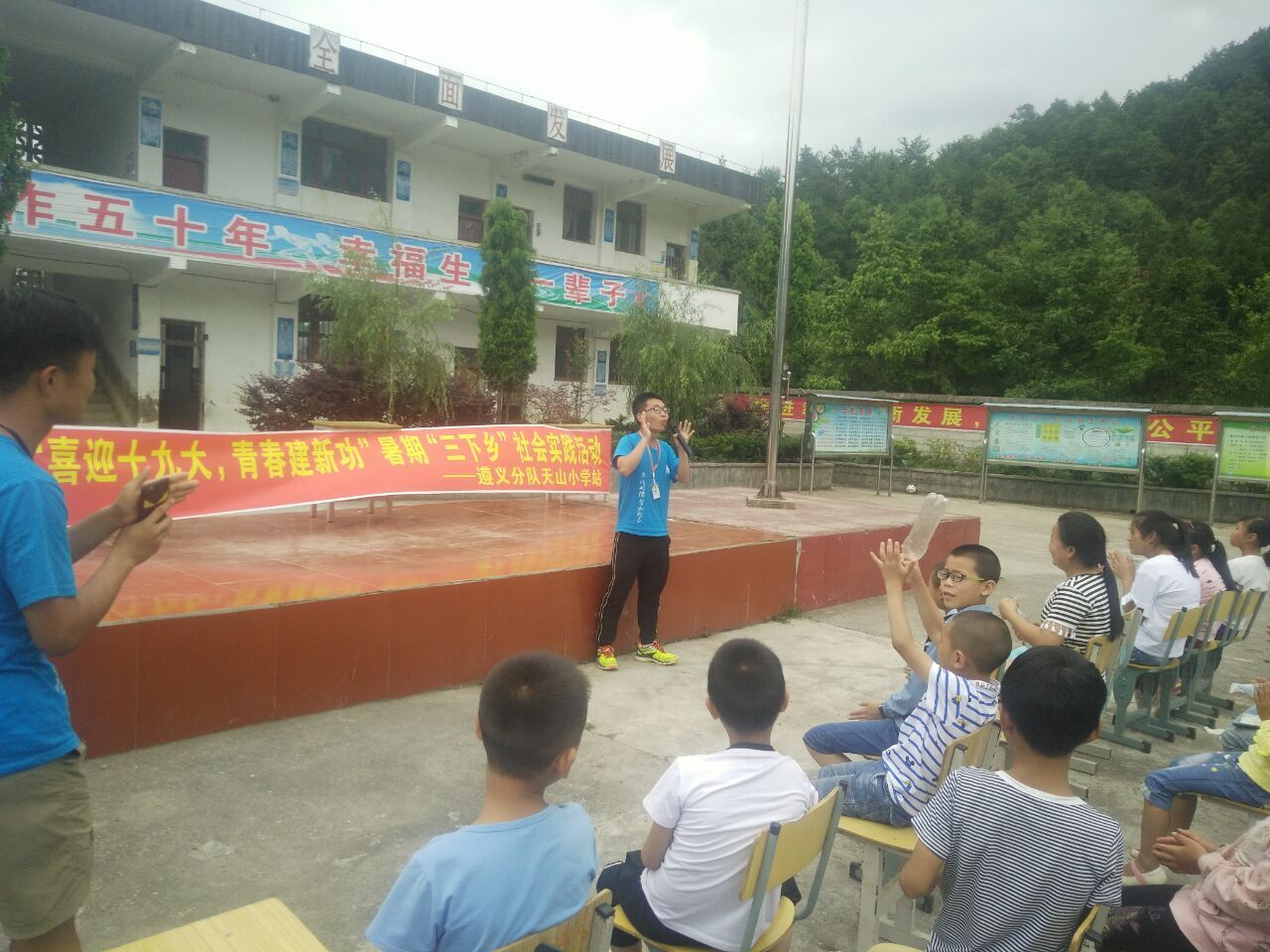 情系西部,爱洒乡间。行政学院暑期文化科技卫生“三下乡”社会实践活动致中遵义分队于7月14日至7月27日,前往贵州省遵义市务川县分水乡天山小学开展暑期支教活动和农村理论宣传工作。