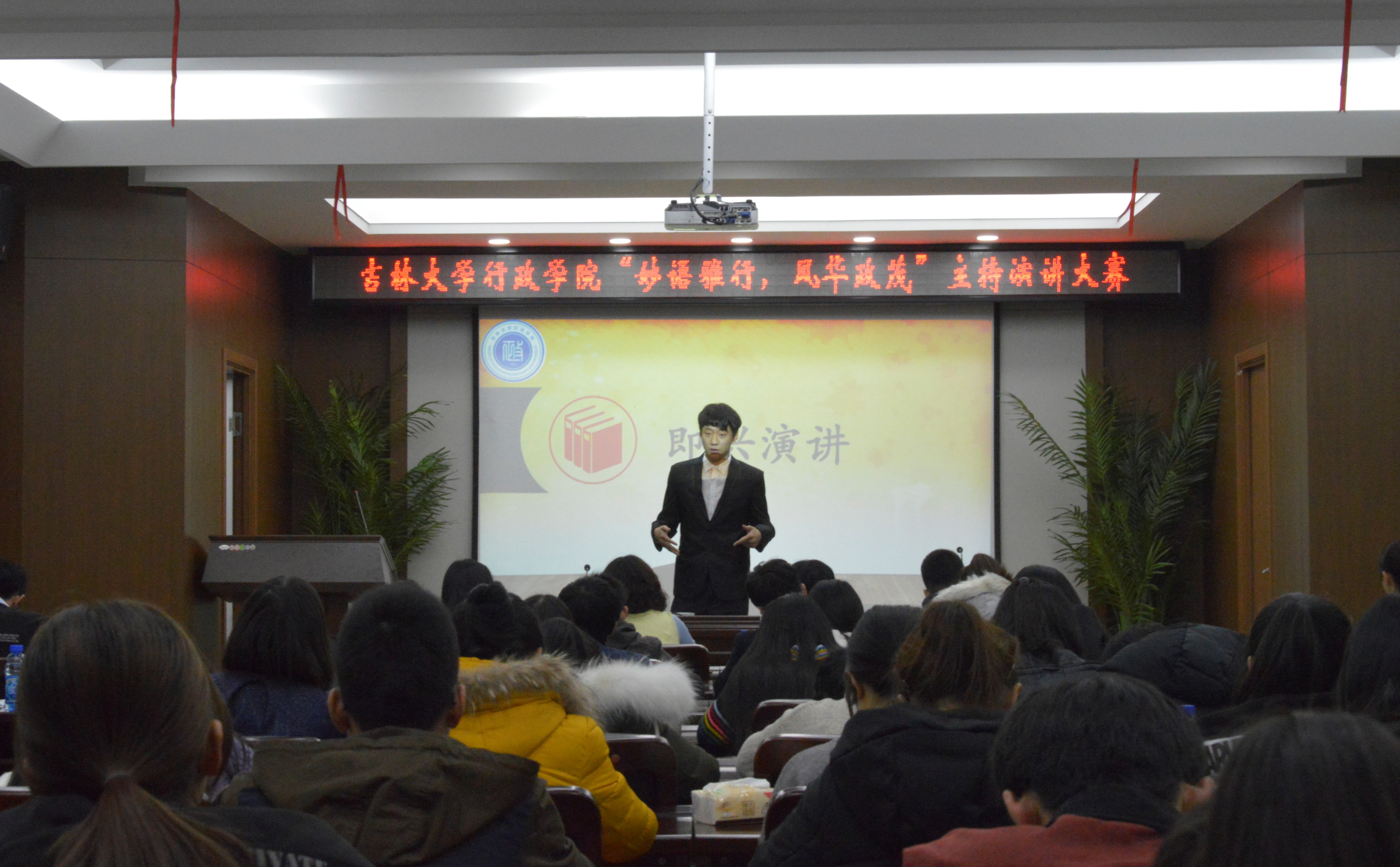 为培养学生口语表达能力,丰富学生课余活动,行政学院团委于12月14日18点在前卫南区东荣大厦B303教室举办了“妙语雅行,风华正茂”主持演讲大赛。