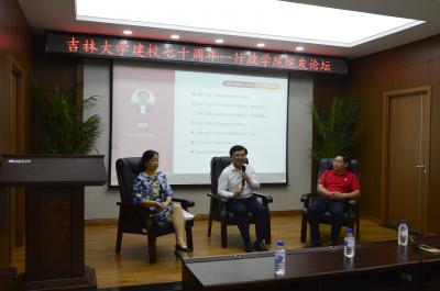 为庆祝吉林大学建校七十周年,促进学院院友与在读学生间的沟通和交流。行政学院于9月16日在前卫南区东荣大厦B303会议室举办了“吉林大学建校七十周年”主题院友论坛。吉林省银泰房地产估价有限公司总经理贾滋绿(1986级)、长春大学纪委书记陈权(1993级)、长春市政府副秘书长周贺(1998级)担任论坛主讲人。行政学院党委副书记兼副院长史慕华、本科生辅导员张英楠以及各年级学生参加了本次论坛。