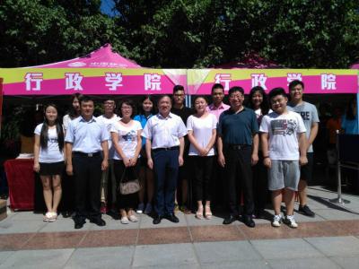 8月19日上午,工作人员在五月花广场统一搭建迎新接待点。下午13时,学院迎新工作正式开始。新生凭借录取通知书以及相关身份证件等在接待点逐一完成报到,办理入学手续。虽然天气炎热,但是工作人员仍然十分认真地指导每一位新同学填写材料。同时,基于新生初来乍到,对部分情况尚不熟悉,学生组织工作人员也在现场为新生及其家长解答困惑。在报到完成后,新生及其家长在2015级学生的带领下前往寝室。在迎新期间,工作人员着装统一整齐,展现了行政学院学子的良好的精神风貌。行政学院党委副书记兼副院长史慕华也来到现场指导迎新工作,对我院的迎新工作给予肯定。