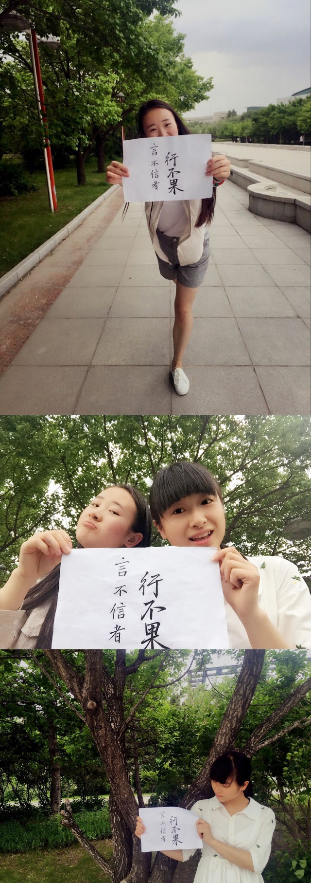 首先,院内学生会维权部对此次活动进行了宣传,在院群及微信公众平台上积极鼓励同学们参加活动。其次,由同学们自行设计关于诚信教育的“pop”手绘素材,并且携带素材在吉林大学前卫校区南区标志性建筑前合影。最后,合影照片交至维权部,通过微信,QQ等平台进行表彰宣传。