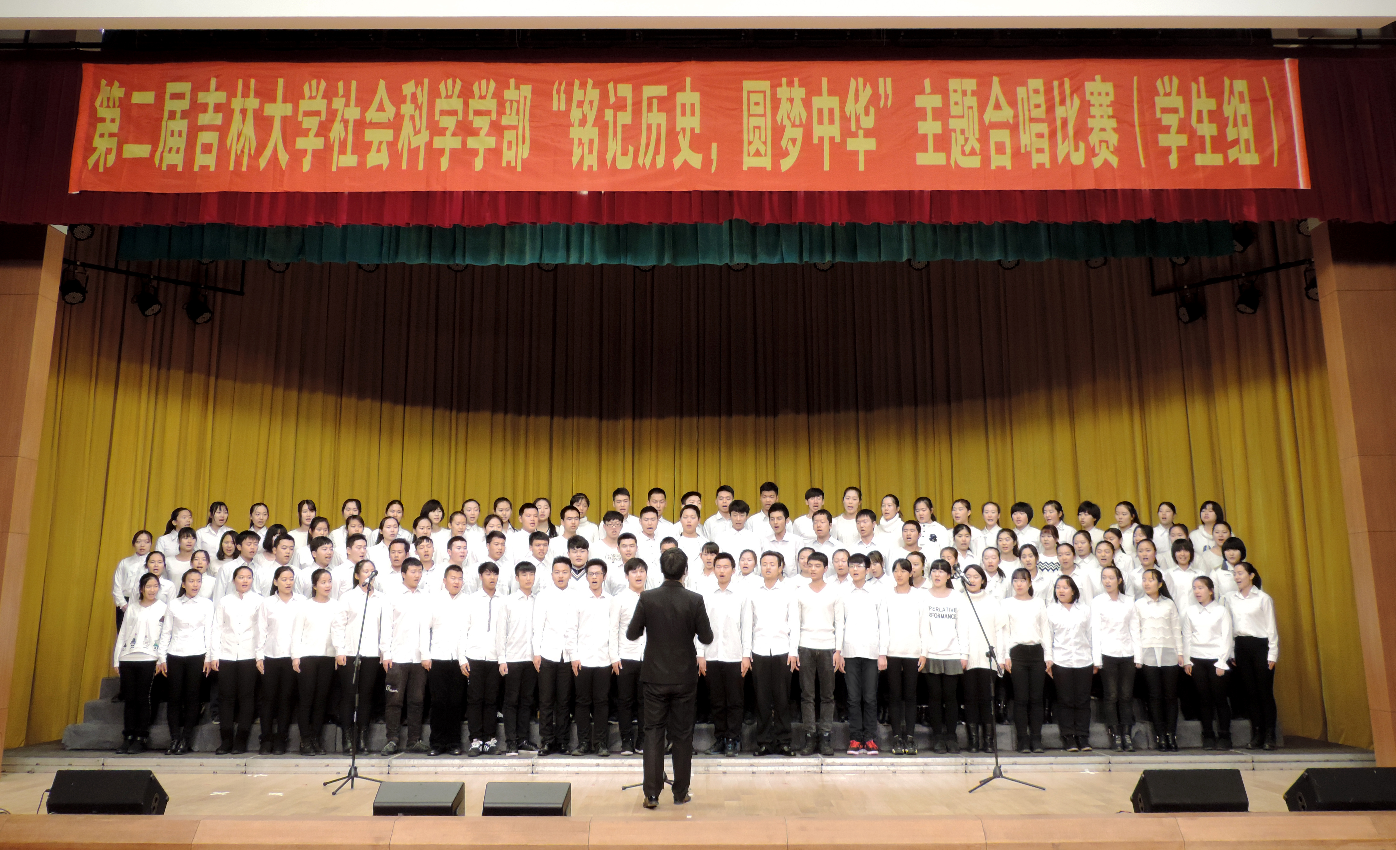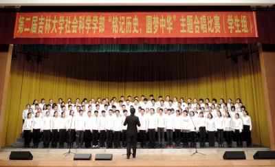为隆重纪念中国人民抗日战争暨世界反法西斯战争胜利70周年、“一二九运动”八十周年,培育大学生爱国精神,第二届吉林大学社会科学学部“铭记历史,圆梦中华”主题合唱学生组比赛于12月8日中午12时在前卫南区经信报告厅举办。经济金融学院、法学院、行政学院、商学院的本科生代表队,马克思主义学院、东北亚研究院的硕士生代表队共六支队伍参加了本次比赛。行政学院党委副书记兼副院长是史慕华出席大赛并担任评委。比赛由行政学院2015级本科生沈沁担任主持。