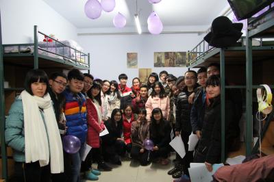 晚上6时30分,活动正式开始。评比先从女生寝室开始,评比内容主要从寝室命名、整体活动、代表介绍、安全纪律、联谊关联五个方面展开。为了展现寝室良好形象,同时突出寝室个性,表达自己的创新思维,同学们积极围绕选择的主题,充分利用自己身边资源,在课余时间对寝室进行精心装扮。有的寝室以亲近自然为主题,将寝室装扮成森林风格;有的则巧妙利用杂物,将平时被我们所忽视的东西制作成美观实用的装饰品,让寝室独具特色;有的同学为突出同学友谊,将室内环境营造出温馨和谐的氛围。面对如此丰富的创意和巧妙的布置,评委们赞不绝口,对寝室的装扮给充分予肯定。在打分环节结束后,评委们与同学们拍照留念。晚上8时许,活动圆满结束。