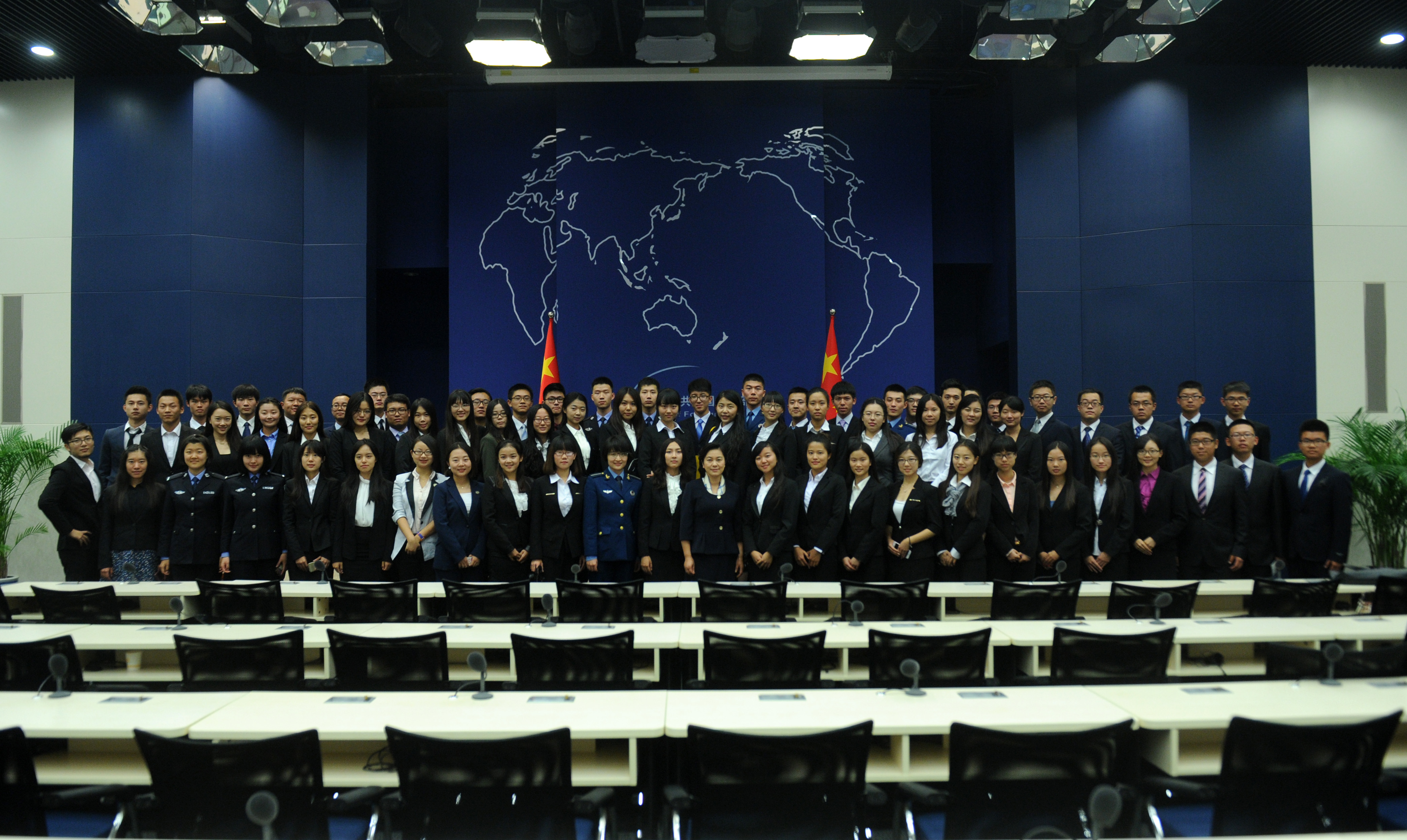 第九届全国高校模拟新闻发言人大赛从10月16日拉开帷幕,于10月18日在北京闭幕。本届大赛由外交学院团委学生会主办,以“新闻发布·新常态”为主题,吸引了吉林大学、复旦大学、南开大学、浙江大学、中央财经大学、中国传媒大学、外交学院、中国公安大学、空军工程大学等16所高校代表队参赛,其中,吉林大学代表队的同学由行政学院13级本科生王迪、行政学院13级本科生付锦睿、哲学社会学院13级本科生郭凯琳、新闻与传播学院13级本科生王一淼组成。