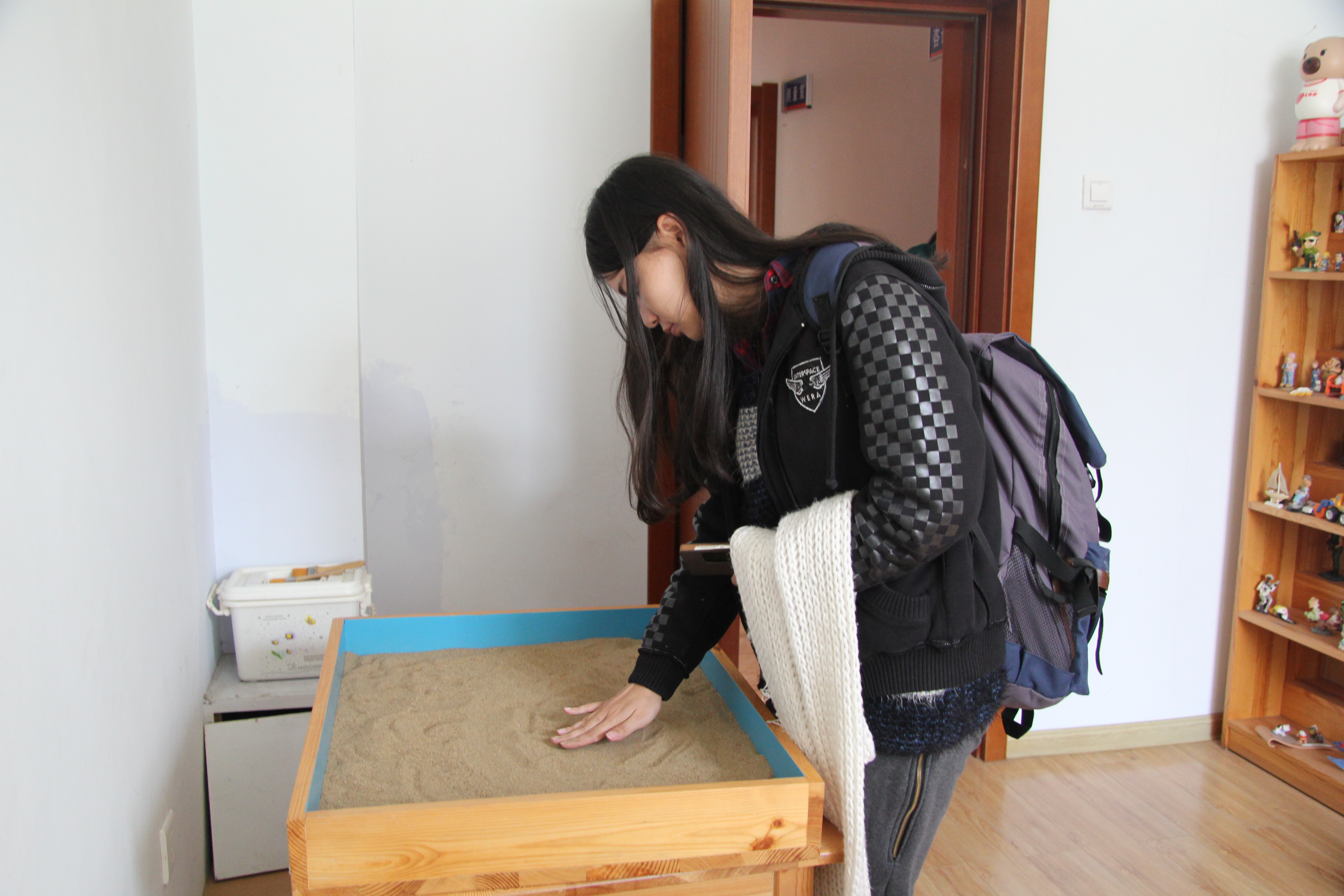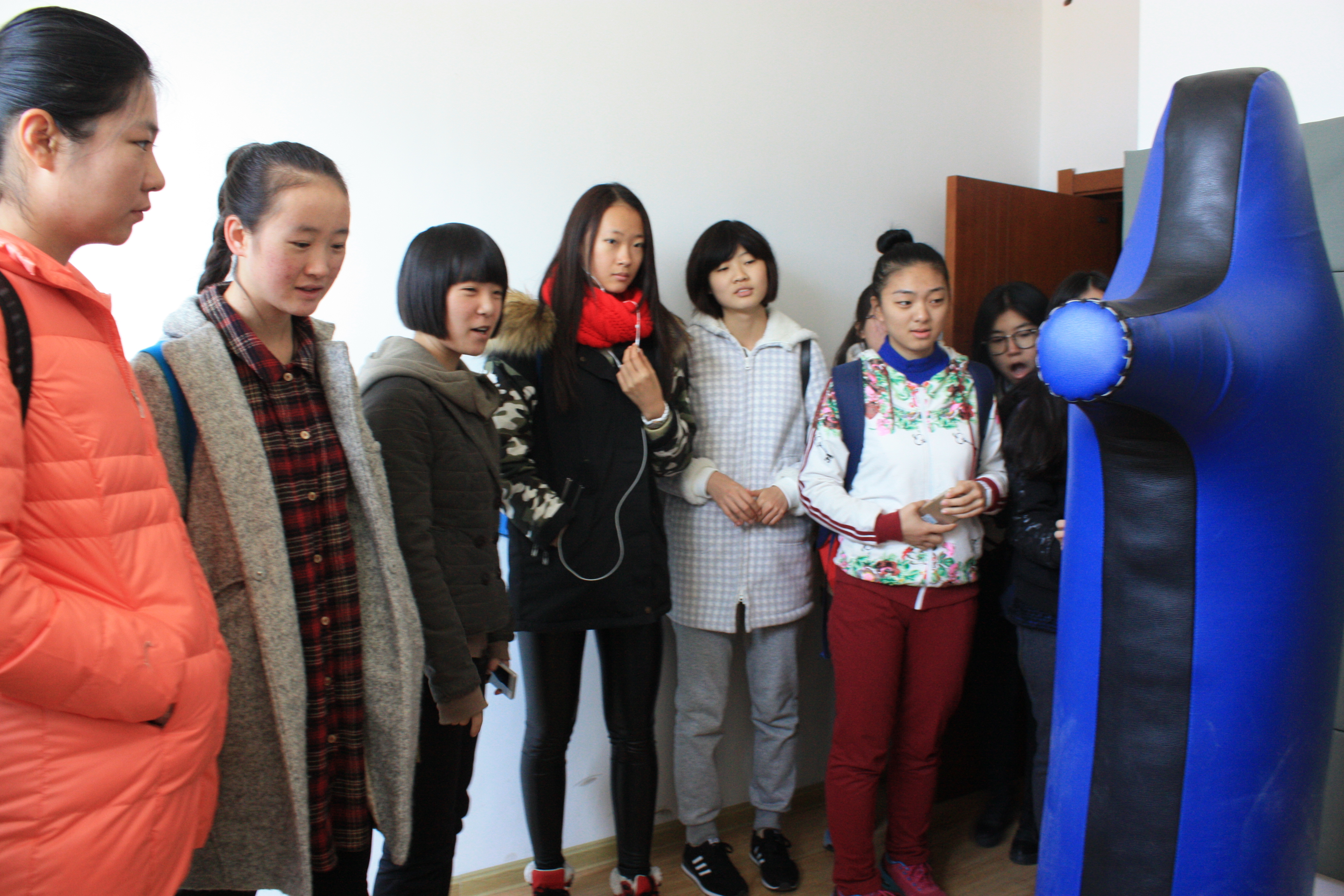 参观活动分小组进行,每组20人,在2015级代理班主任及各班心理委员的带领下依次进入心理素质培训基地进行参观。朋辈心理辅导员白天向大家分别简单介绍了基地的各个部分。基地主要有通过专业测评了解自己未来发展方向的心理测量训练室,帮助减轻压力的放松训练室,在安全前提下释放负面情绪的心理宣泄室,能够加深自我了解的沙盘游戏室,解决具体心理问题的心理咨询室以及存有心理方面书籍的阅览接待室。同学们还进行了实际体验,更进一步了解基地设置的功能。