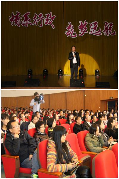 傍晚夜空繁星点点,迎新舞台流光溢彩。晚会开始之前,舞台两侧的大屏幕播放了事先拍摄的学院领导和教师对2015级新生的殷切希望与美好祝福。行政学院院长张贤明教授随后代表学院致辞,他以“四句话、四层意思”为概括,表达了对同学们的祝贺与期望。首先,他介绍了吉林大学行政学院的地位与影响力,以及学术名家、优秀校友和学院建设发展的光辉历程,感谢2015级新生为学院注入了新鲜血液与活力,勉励大家分享学院的光荣与梦想,肩负继承和发扬行政学院优良传统的使命与责任,相信行政学子会为今天的选择骄傲自豪。之后,他希望行政学子要培养广博的学识,敢于质疑、独立思考,还要有健全的人格,敢于竞争、善于合作,为国家、为社会、为民族贡献自己的一份力量。同时,他也期待新生们能拥有强健的体魄,并拥有美好多彩的生活。