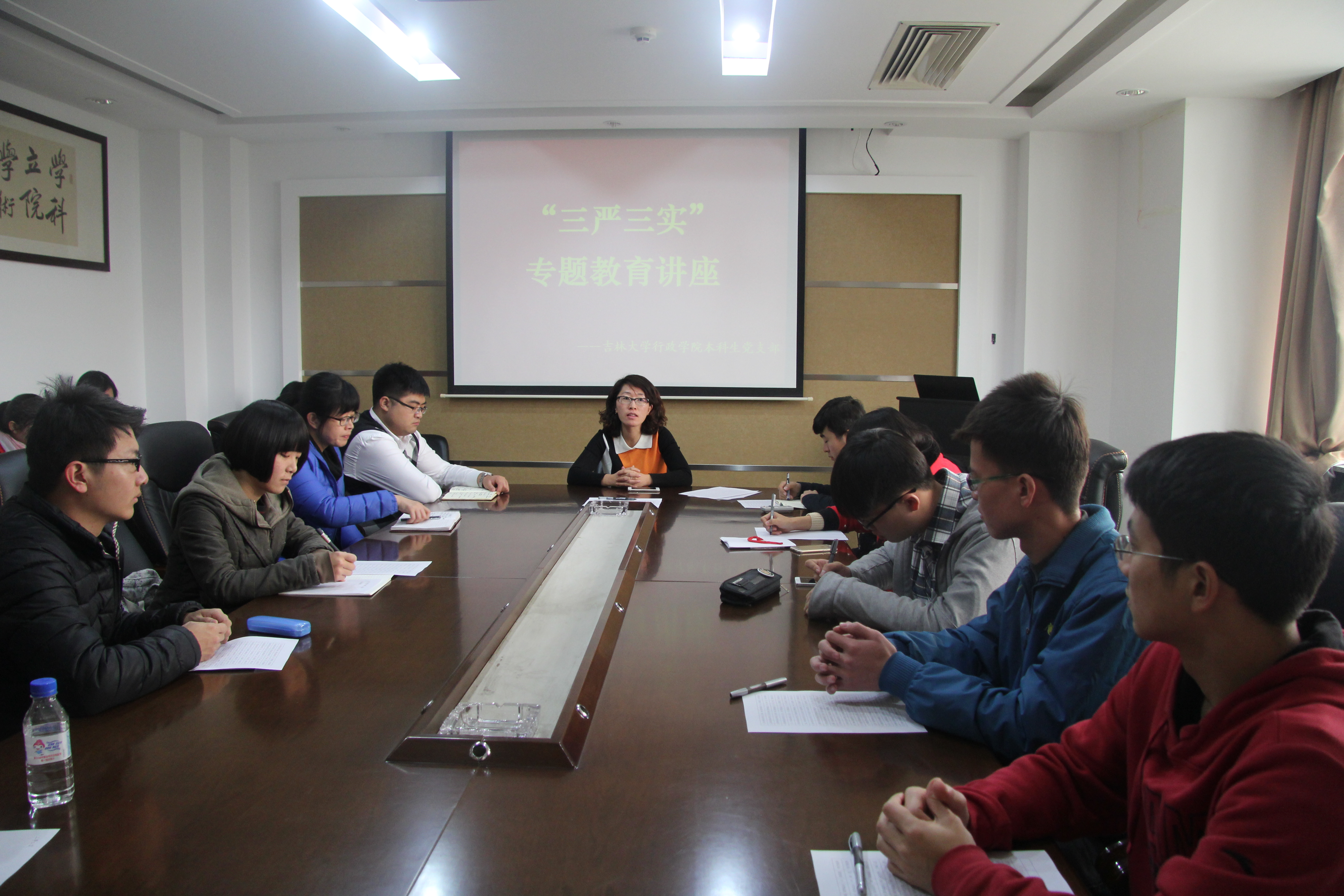 为了贯彻落实学校关于开展“三严三实”专题教育的工作部署,10月29日,行政学院在前卫南区东荣1214会议室对全体本科生党员开展了第三次“三严三实”专题教育。党委副书记兼副院长史慕华主持此次会议,本科生辅导员刘洋、曲畅竹出席此次会议。