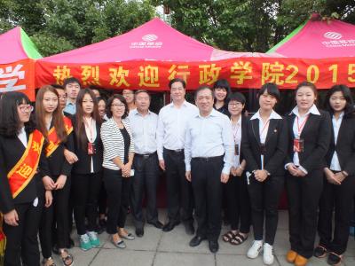 学校领导同样十分关注此次迎新工作,29日上午校党委书记杨振斌、校长李元元、校党委副书记兼副校长韩晓峰以及其他校领导莅临迎新现场,看望新生及家长,并慰问工作人员。最后,在行政学院迎新接待处前,工作人员们与校领导合影留念。
