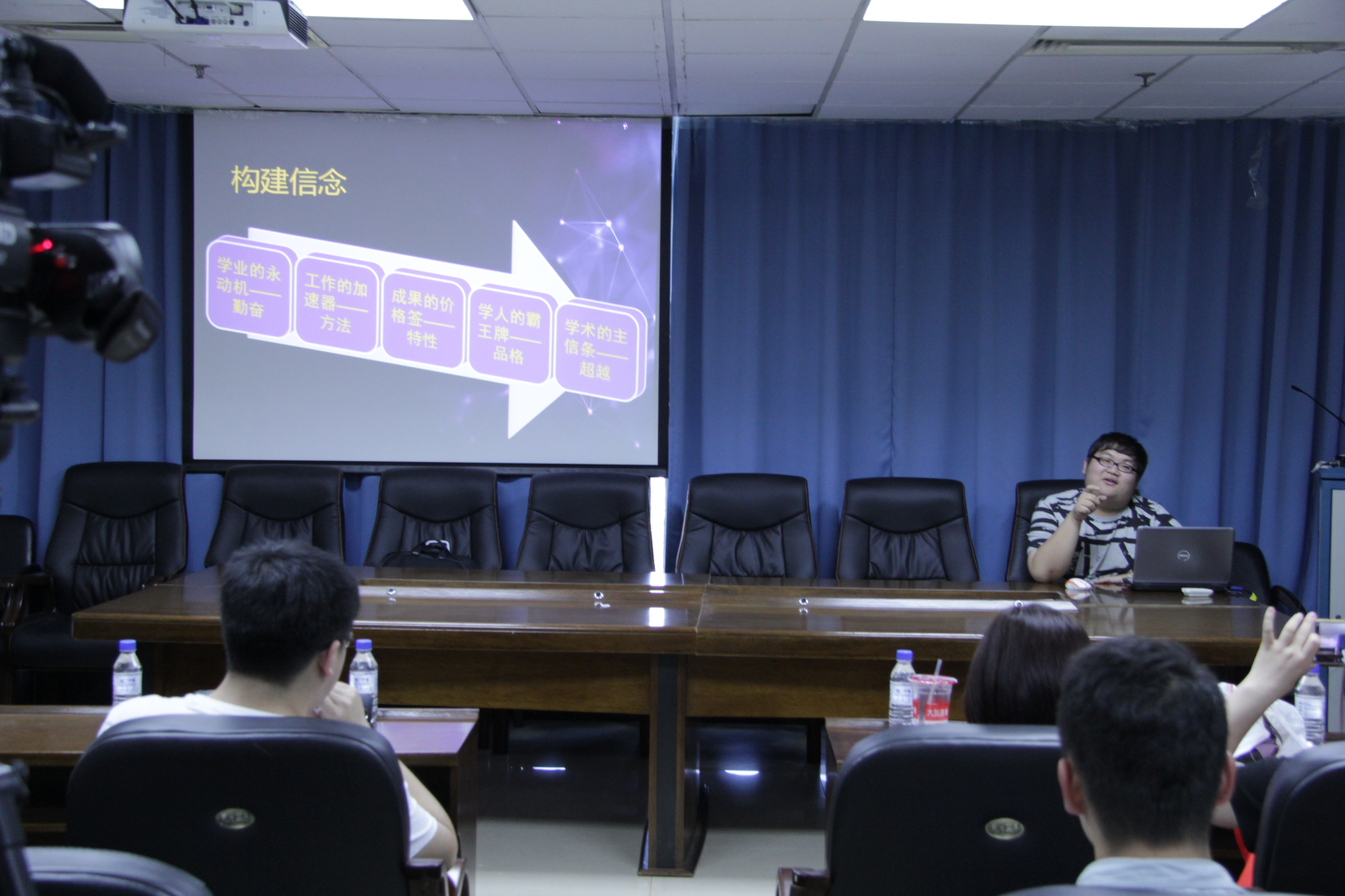 留学的毕业生代表首先介绍了一些关于出国留学的注意事项,讲述了其利弊和具体要求,分享了自己了解到的赴美赴欧留学的流程和细节。代表们尤其强调了英语的重要性。国内读研的毕业生代表则和大家分享自己保研和考研的经历,在学习方面为同学们提供了一些建议。他们强调考研最重要的在于坚持,应保持良好心态,积极备考应考。毕业生代表们用自己的亲身经历告诉大家,应充分珍惜大学四年时光,努力学习,提升自我能力。在提问环节,在场观众就留学要涉及的学位证、留学中介和考研需要用到的参考资料等问题咨询了毕业生代表,代表们对其进行了耐心详细地解答。活动最后,2011级六位优秀毕业生代表和2012、2013级班委代表互相赠送了礼物,大家合影留念。