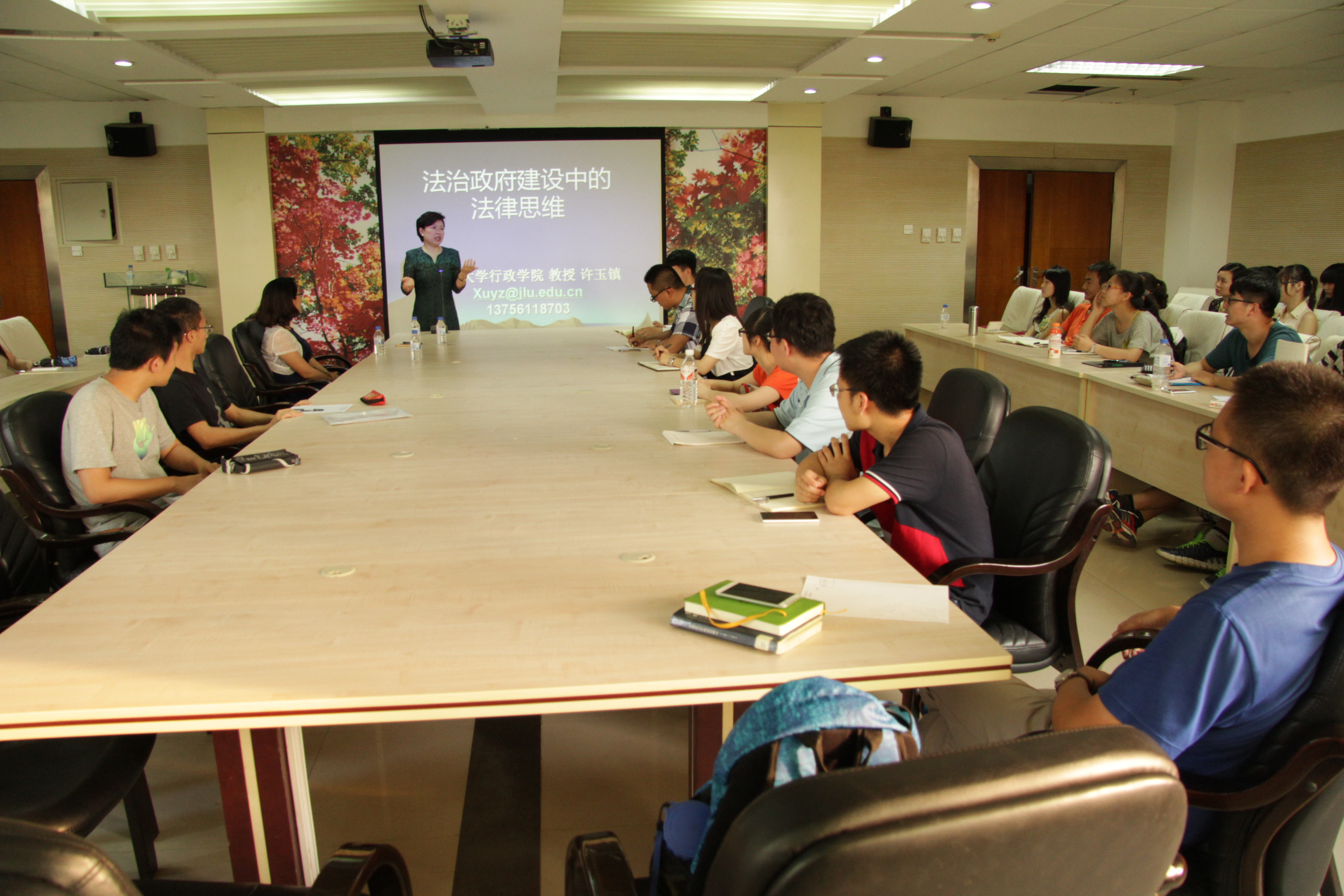 为提高学生学术思维能力,丰富学生专业知识。6月16日17时30分,行政学院于前卫南区东荣大厦十楼1006室成功举办了“知行大讲堂”第二期学术讲座。本次大讲堂以“法治政府建设中的法治思维”为题,由行政学院行政管理系教授、博士生导师、副院长许玉镇主讲。行政学院党委副书记兼副院长史慕华应邀出席本次讲座,部分本科生聆听了本次讲座。讲座由孙超群(2013级)主持。