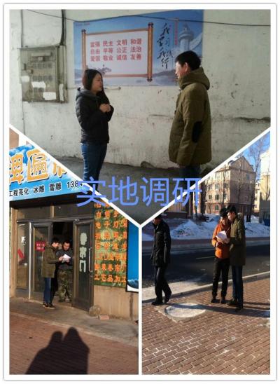 为了最优化的为十三五规划建言献策,团队成员在广泛梳理了相关文献后,于1月28日在调研地点黑龙江省伊春市集结,短暂调整后,前往了调研地的第一站——伊春市桃山林业局,团队成员对当地的玉矿管理进行了走访学习,并详细了解了当地的旅游产业发展,对相关人员进行了个案访谈,在当地热心居民的帮助下发放了调查问卷,随后,团队成员在一起总结整理了调研成果,调整设计了接下来的调研计划,队员们纷纷表示此次调研各自收获颇丰,提高了自己的社会实践能力,对伊春的热情民风有了初步了解。