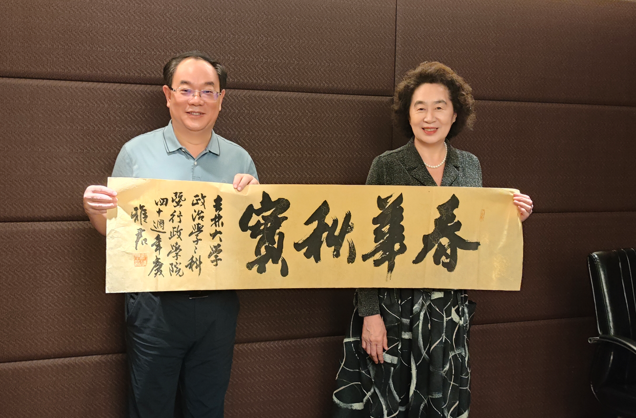 原中国书法家协会秘书长、北京校友会行政分会顾问郭雅君,为母院题字“春华秋实——吉林大学政治学学科暨行政学院四十周年庆”