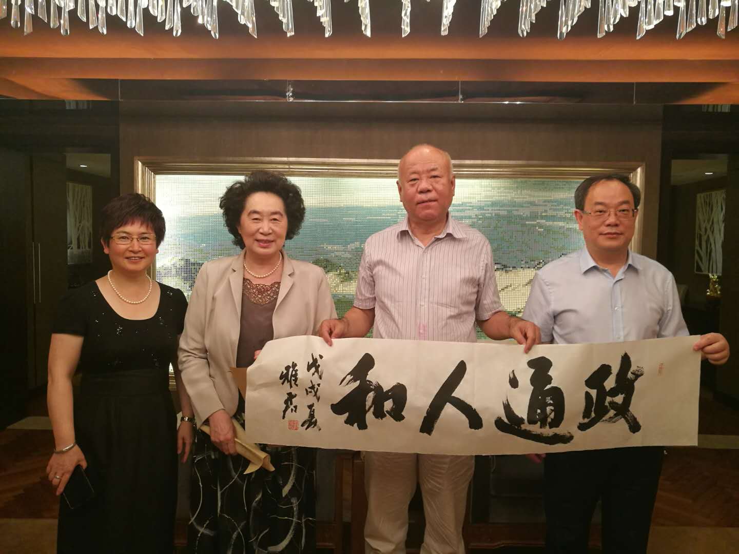浓浓母校情,依依院友心。中国著名书法家、行政学院政治学博士郭雅君捐赠字:“政通人和”,“吉林大学行政学院北京校友会成立”。