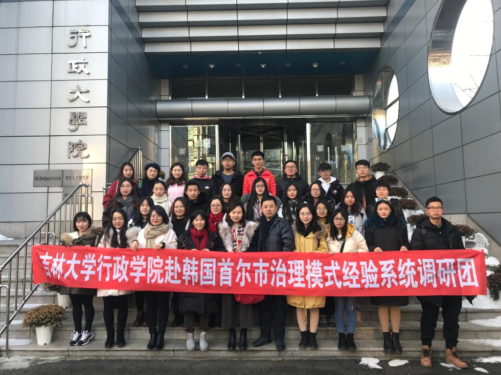 12月16日至20日,吉林大学行政学院赴韩国首尔市治理模式经验系统调研团(以下简称:调研团)师生37人,应韩国首尔国立大学行政大学院邀请,赴韩国首尔国立大学、韩国国会、中日韩三国合作秘书处、韩国经济正义实践市民联合会进行访问、调研。调研团有行政学院2名教师和35名学生组成(其中,博士研究生9人,硕士研究生9人,本科生17人),由行政学院副院长范斌带队。