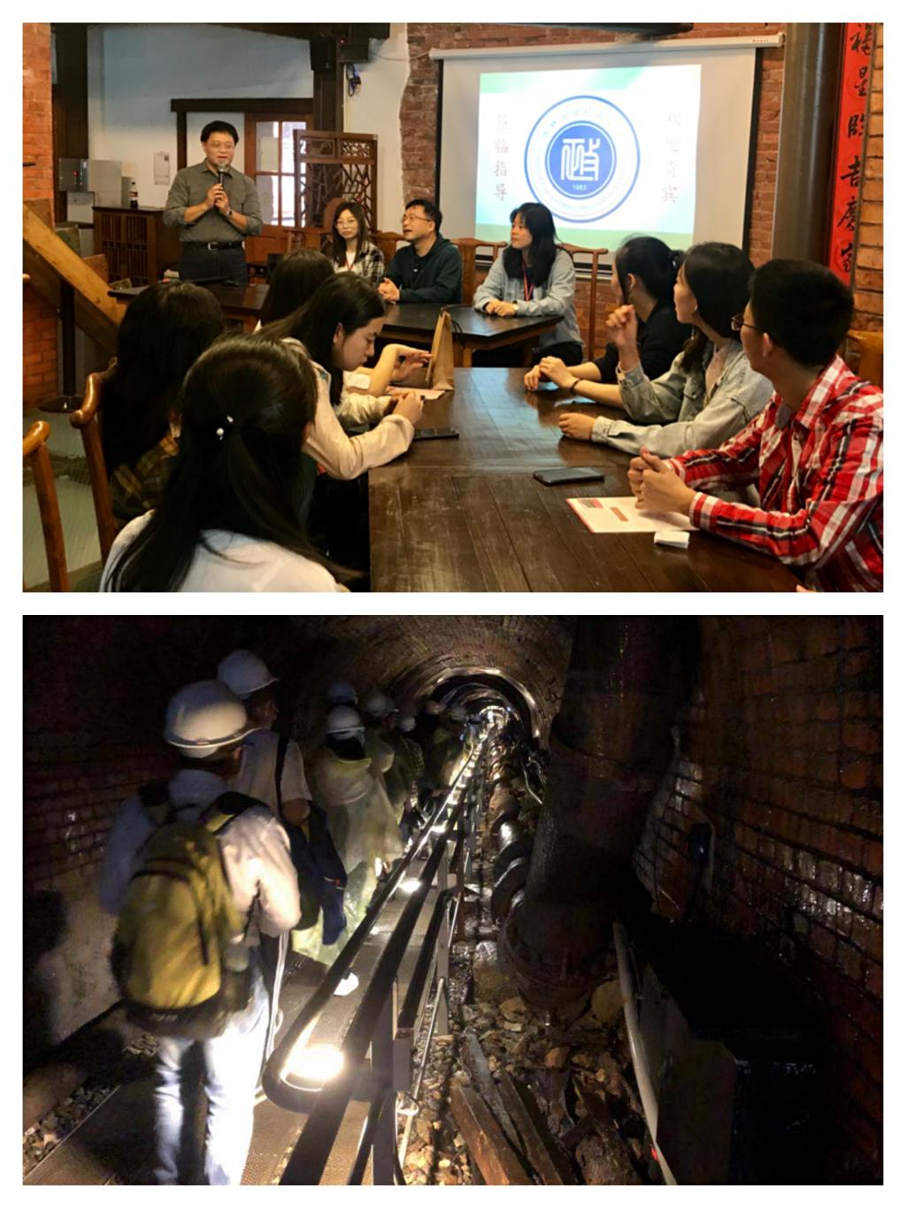 10月31日下午,工作坊抵达黄金博物馆。黄金博物馆位于新北市瑞芳区,是台湾第一个生态博物馆。成员们在老师带领下戴上安全帽开始探矿之旅,感受金瓜石的矿业历史与文化,体验金瓜石昔日的繁荣光采,同时也感受到当时矿工们的挖矿生活的艰辛。