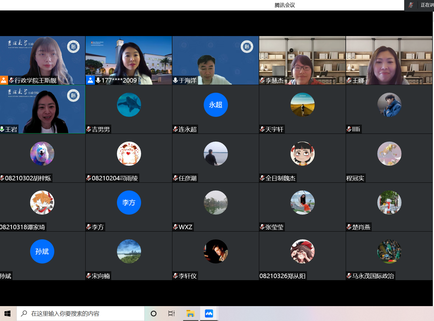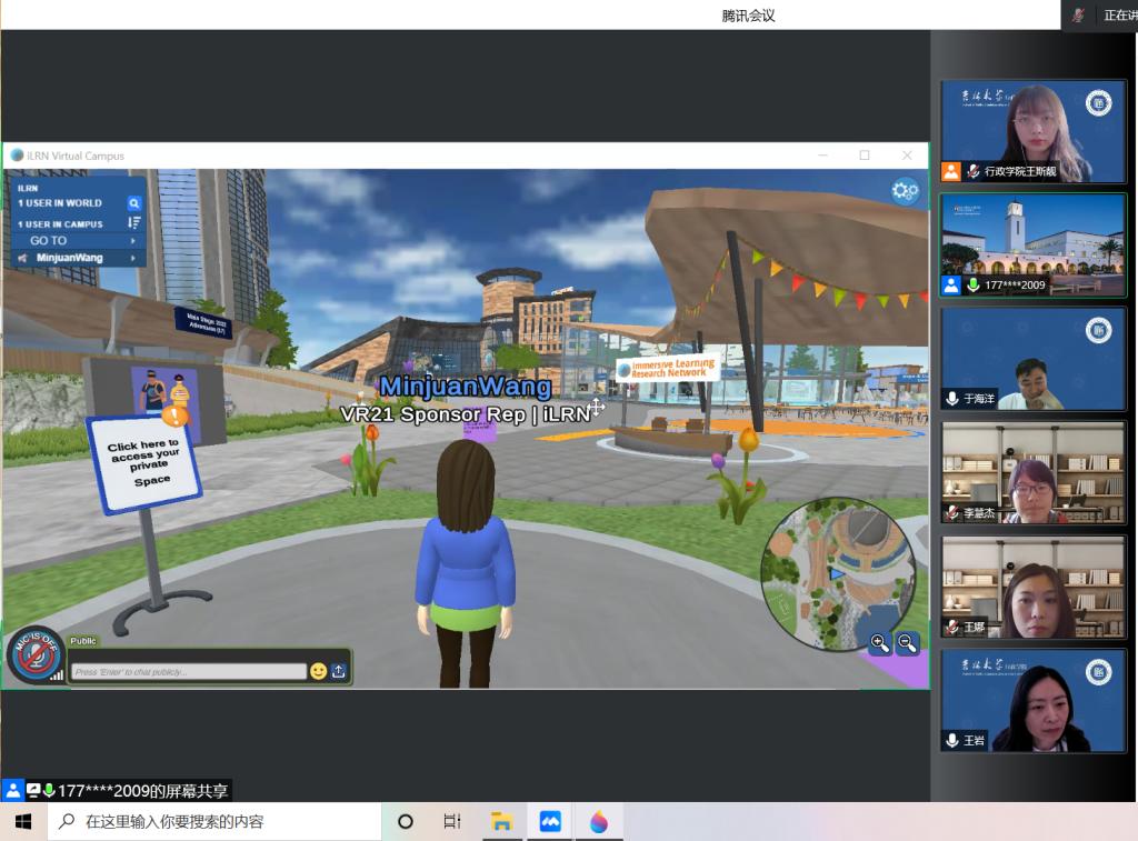 2022年5月6日上午,吉林大学行政学院举办第七期教学与学术能力提升系列讲座——大学课程教学的变革与创新:妙用XR技术和元宇宙。本次讲座邀请美国加州圣地亚哥州立大学学习设计与技术系终身教授兼系主任、国际沉浸式学习协会副主席王敏娟博士以线上腾讯会议形式做专题学术交流。本场讲座由王岩老师主持,学院副院长于海洋教授、宫笠俐教授、王娜老师、李慧杰老师、教学办公室主任连永超、本科生辅导员高卓嫱、外事秘书王斯靓出席聆听,近60名校内外师生及业内人员参加。