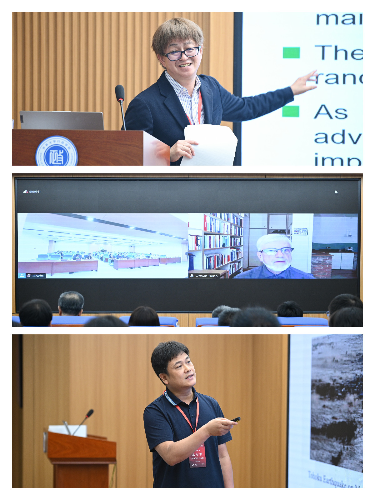 主旨演讲环节中,清华大学公共管理学院院长朱旭峰教授,香港科技大学环境与可持续发展学部Benjamin Steuer 助理教授,美国中密苏里大学地理学系Lee Liu教授,日本总务省统计数据应用中心、大阪大学下川敏雄教授,德国可持续发展高级研究院Ortwin Renn教授及南京大学政府管理学院副院长张海波教授先后发言。主旨演讲环节由吉林大学行政学院公共管理系主任董伟玮副教授主持。