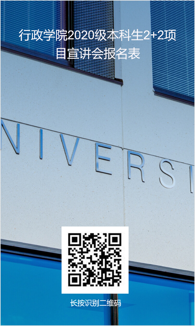 本次宣讲会将于ZOOM平台同步进行,对项目感兴趣的2020级同学可自行选择线上参会或线下参会。会议地址为:https://uky.zoom.us/j/84464395577。参会同学请填写《行政学院2020级本科生2+2项目宣讲会报名表》,并在“姓名”栏中标注参会方式(线下/线上)。