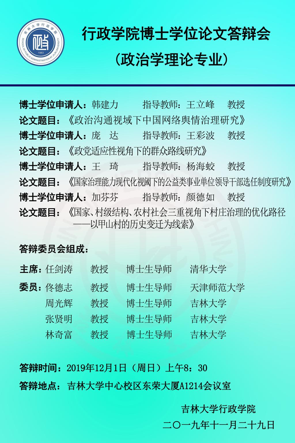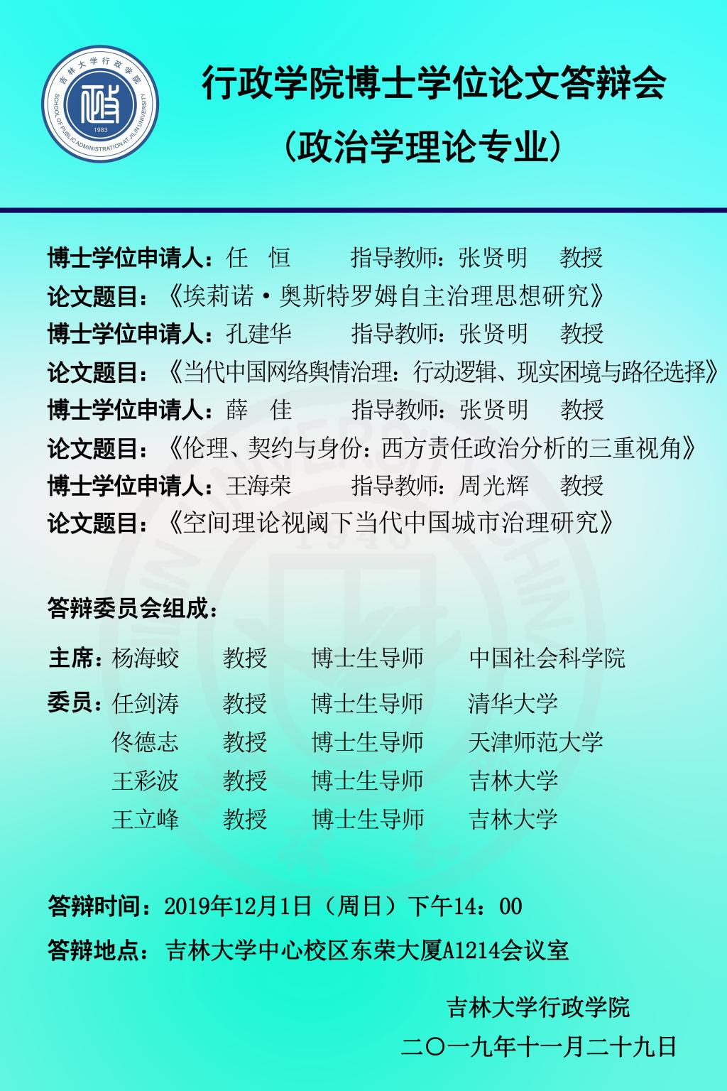 第一组:政治学理论专业(2019年12月1日上午组8:30开始,吉林大学中心校区东荣大厦A1214会议室)