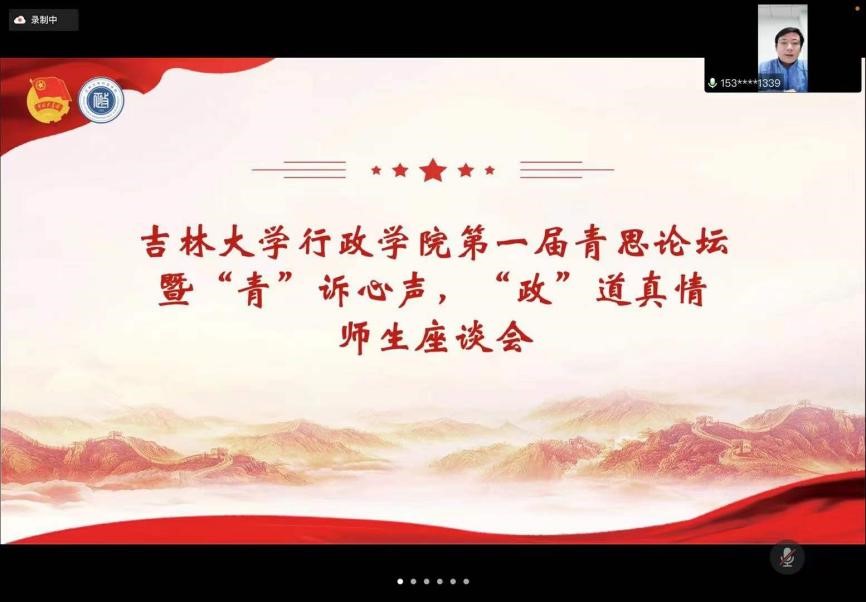 为继承和发扬行政学院优良传统,搭建学院师生间沟通交流的桥梁,在校园全封闭管理时期促进青年师生交流发展,适逢我国第73个青年节之际,2022年5月3日晚,行政学院举办第一届青思论坛暨“‘青’诉心声、‘政’道真情”五四青年节师生座谈会。学院党委书记马景惠、党委副书记史慕华、团委负责人孙月、青年教师代表张力伟、青年学生代表、学生组织代表等参加座谈会,会议由学院党委副书记兼副院长、纪委书记张洁主持。