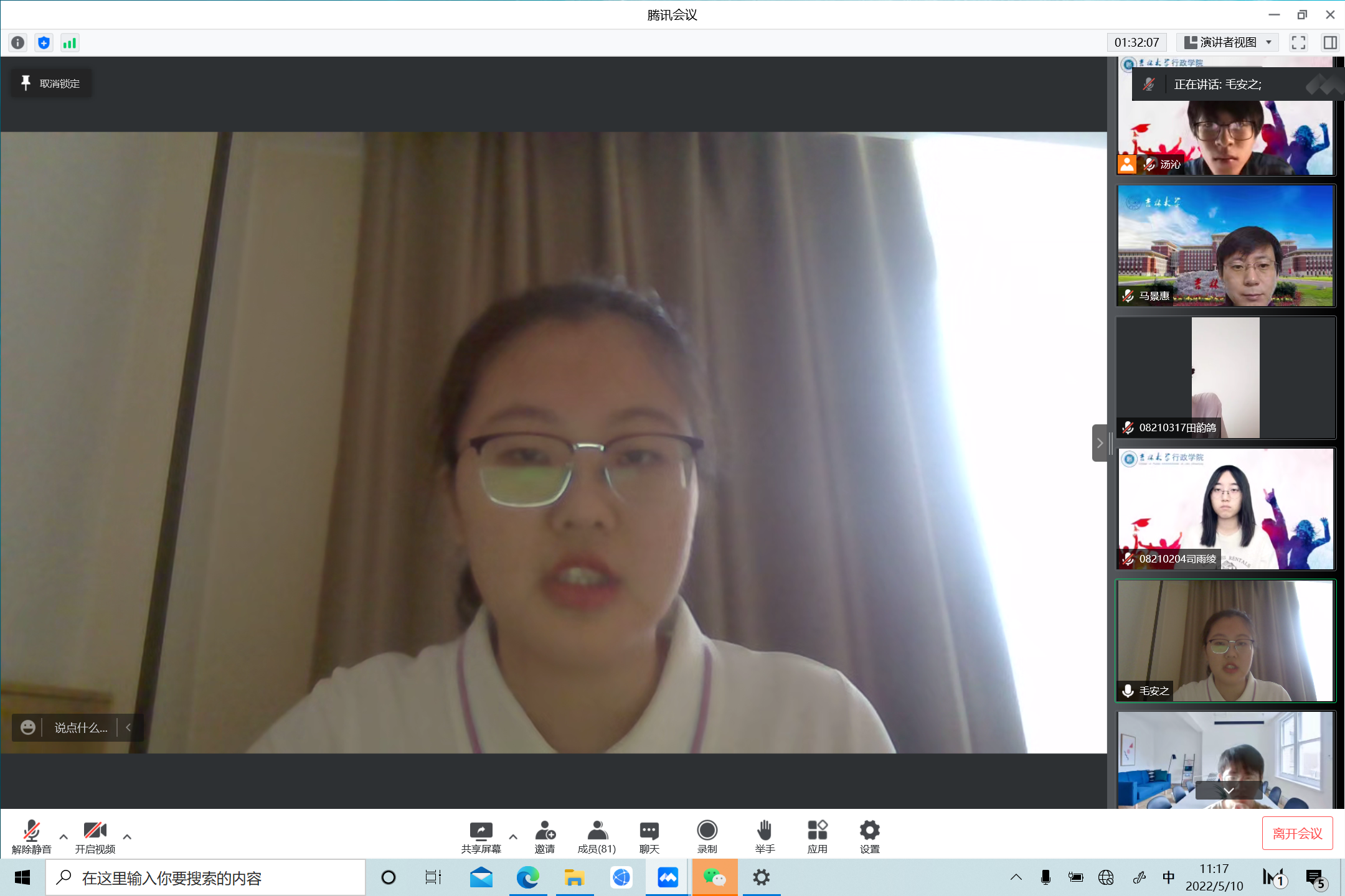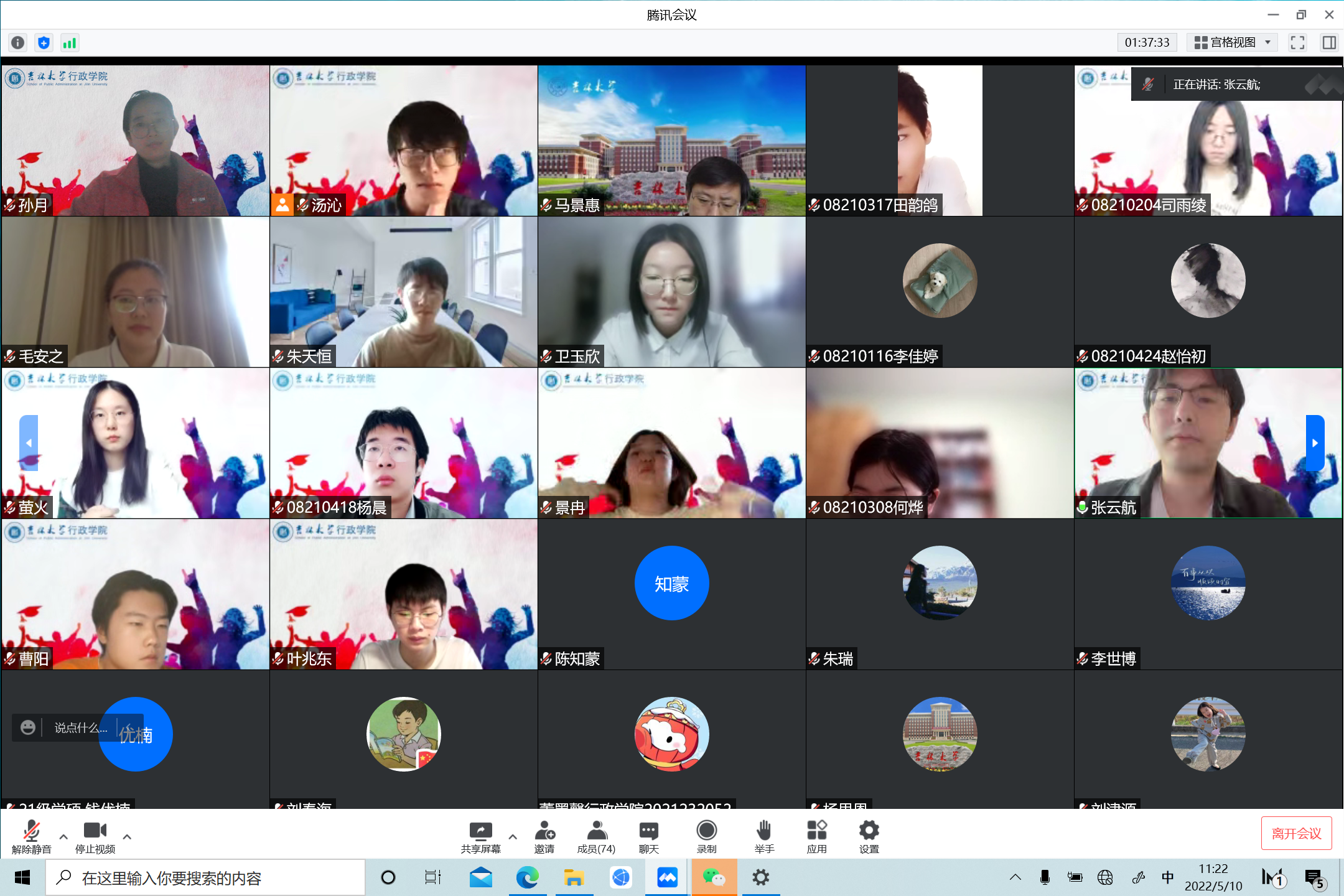 青年者,国之魂,青年最富有梦想与朝气,是祖国的未来和民族的希望。5月10 日上午,庆祝中国共产主义青年团成立100周年大会在北京人民大会堂隆重举行。中共中央总书记、国家主席、中央军委主席习近平出席大会并发表重要讲话。行政学院以视频会议形式组织广大师生一同观看大会盛况。学院党委书记马景惠、党委副书记史慕华、行政副院长季洪涛、各系党支部教师代表、党委办公室主任、团委指导教师、团委委员、团支部书记、研究生代表、入党积极分子代表及新换届的学生组织成员代表等参加线上会议,其他无课师生通过相应媒体平台收看转播。学院党委副书记兼副院长、纪委书记张洁主持集体观看直播活动。
