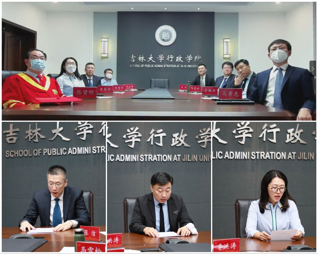 2022年6月15日上午,吉林大学行政学院使用学校云视频会议系统举办2022届学生毕业典礼。学院领导班子成员在东荣大厦B304会议室集体参会,学院近期退出领导班子的同志、学院及科研机构全体教师、行政教辅管理人员、2018级本科生原辅导员、行政学院2022届全体毕业生及学生家长分别在线上参会。毕业典礼由学院党委副书记兼副院长、纪委书记张洁主持。