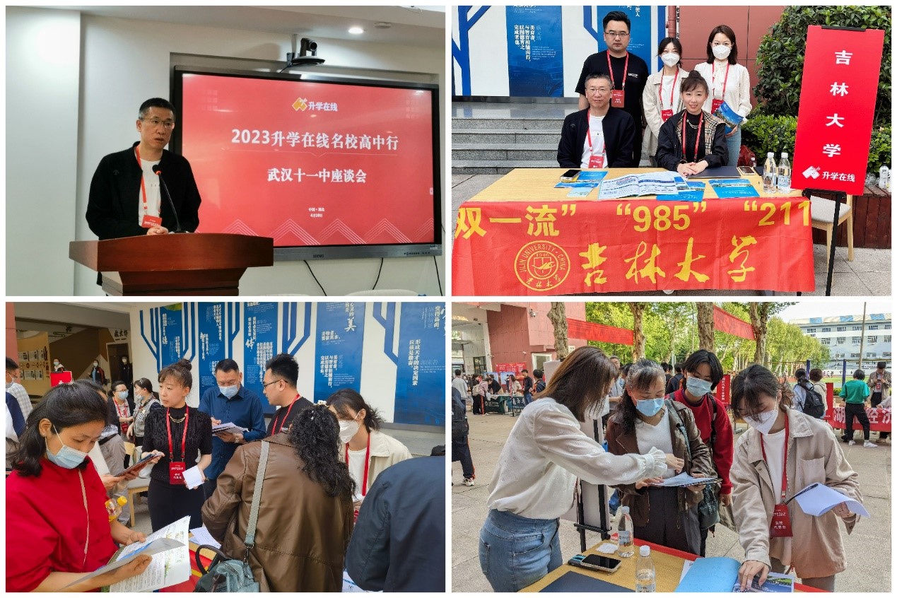 在武汉市第十一中学,刘雪华、刘畅、张力伟、高卓嫱、王斯靓一行5人参加“升学在线名校高中行”武汉场次活动。座谈会环节,刘雪华向武汉市第十一中学陶勇校长、武汉市第三中学张才清副校长、武汉新洲区第一中学任红斌副校长与高校同仁介绍了我校概况、转专业与“日新计划”新政策及2022年我校在湖北省招生基本情况。座谈会后,刘雪华与张才清亲切会面,双方回顾了2018年行政学院本科招生宣传工作组在武汉三中建立我校“优秀生源基地”的过程,分享了近年武汉三中学子报考我校情况,并就下半年开展本科招生宣传活动的时间安排进行初步确认。