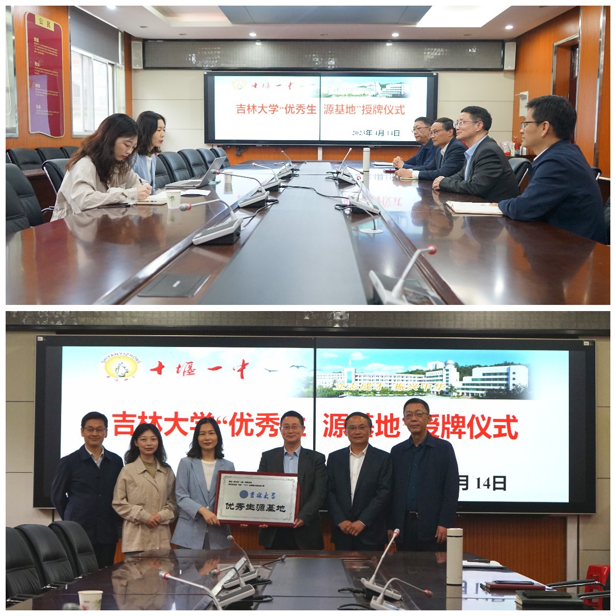 4月14日上午,宫笠俐、王斯靓一行2人还到访十堰市第一中学(以下简称“十堰一中”),获得了十堰一中党委书记龚涛,党委副书记、校长马向东,副校长魏兵,工会主席张立克,校办赵国德等领导老师的热情接待。宫笠俐向十堰一中与会领导老师详细介绍了吉林大学的建校历程、办学资源、人才培养、师资力量和优势学科。双方共同回顾了近年来十堰一中输送至吉林大学的优秀毕业生情况,并举行了吉林大学“优秀生源基地”授牌仪式。这也是行政学院代表学校授牌的第15所湖北省优秀生源基地。