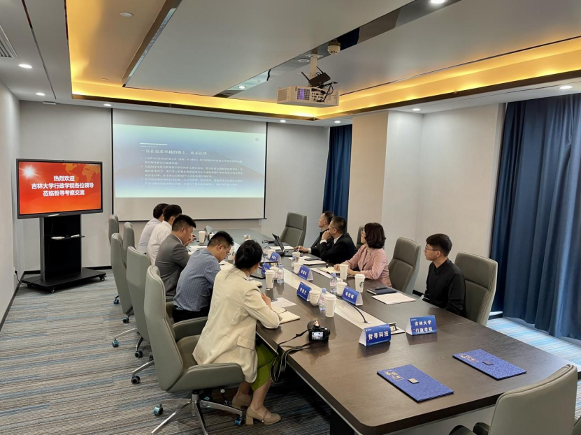 为实现产教融合、共创共享,推动校企合作不断深化,加强学院学科建设和育人水平,开拓毕业生就业渠道2023年5月9日吉林大学行政学院党委副书记史慕华、党委副书记兼副院长张洁、副院长刘雪华、研究生秘书宋佳晖一行赴上海哲寻信息科技有限公司交流访问,并成功签署“智慧政务实践创新基地”校企共建协议。上海哲寻信息科技有限公司总经理尹朝辉、副总经理徐坤、销售总监王继承等出席签约会。
