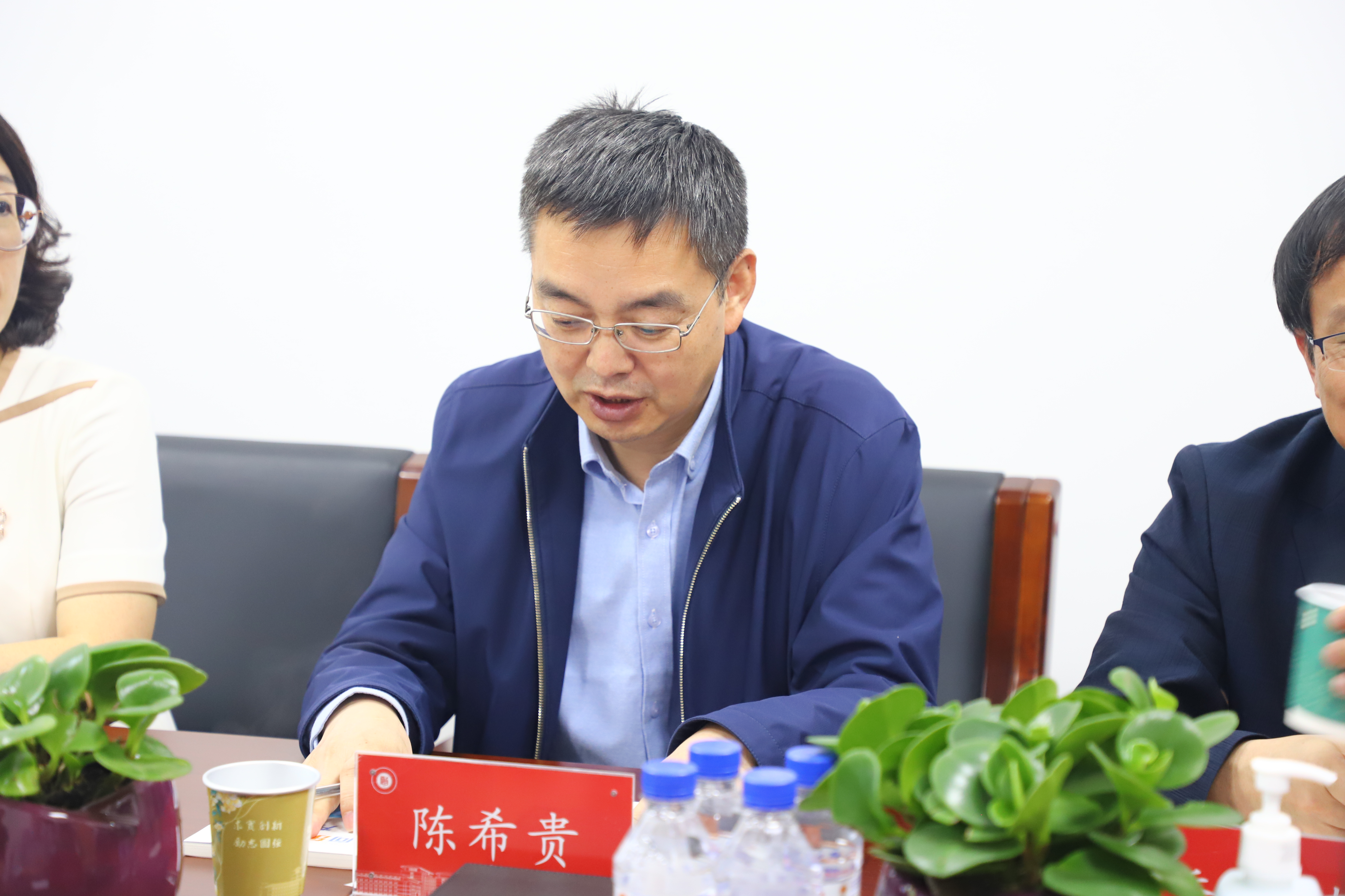 陈希贵代表行政学院热烈欢迎伍婷婷副部长一行来到吉大开展人才招聘工作,介绍了行政学院的历史沿革、学科设置等基本情况,并分享了近年来学院在访企拓岗、促进学生就业方面的特色举措。