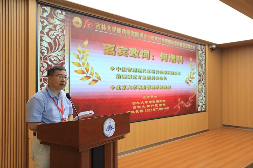 中国管理现代化研究会廉政建设与治理专业委员会会长、北京大学政府管理学院何增科教授,清华大学党委副书记、清华大学纪检监察研究院院长过勇教授,深圳大学廉政研究院执行院长、深圳大学政府管理学院党委书记陈文教授先后发表热情洋溢的致辞,对吉林大学廉政研究院十年来的发展给予了高度评价。专家们一致认为,经过多年的努力,吉林大学廉政研究院如今已经成为中国廉政学科学研究和人才培养的重镇之一,为中国廉政学的发展作出了重要贡献。