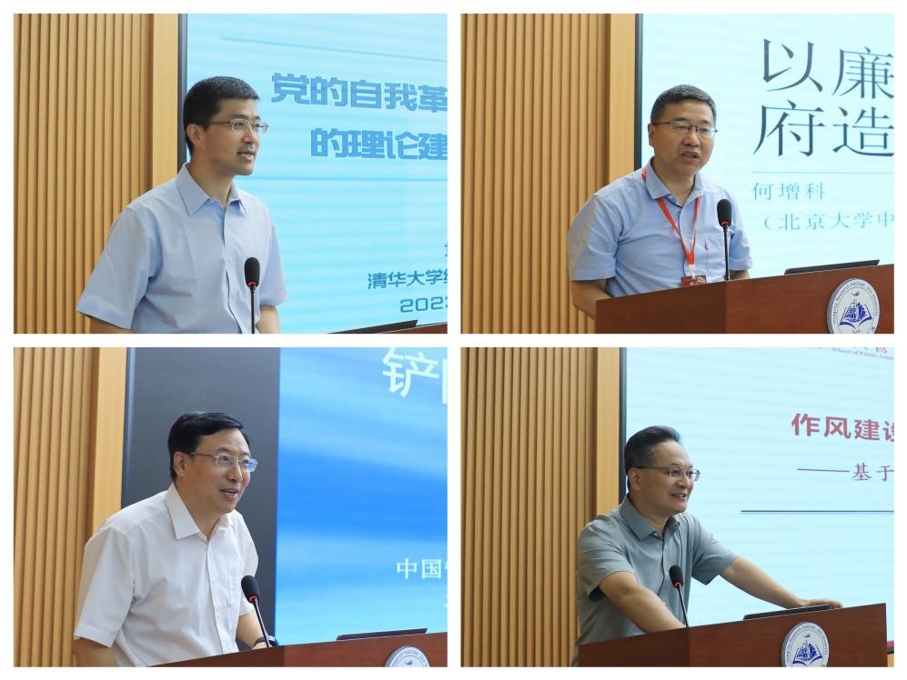 主旨演讲由11位知名专家学者作主旨发言。吉林大学廉政研究院副院长、吉林大学行政学院副院长马雪松教授和吉林大学廉政研究院副院长、吉林大学行政学院刘畅教授分别主持主旨演讲环节。清华大学党委副书记、清华大学纪检监察研究院院长过勇教授以“党的自我革命引领社会革命的理论建构和实践创新”为题作主旨发言,指出应从实践原则、地方经验、理论探索三个方面构建中国共产党自我革命制度规范体系。中国管理现代化研究会廉政建设与治理专业委员会会长、北京大学政府管理学院何增科教授围绕“以廉能政治和勤廉政府造福于民”作主旨发言,指出廉能政治与勤廉政府是牵引中国式现代化的火车头和发动机,廉能政治建设是反腐败工作的目标指向。中国管理现代化研究会廉政建设与治理研究专业委员会理事长、北京航空航天大学公共管理学院任建明教授的主旨发言题目是“铲除腐败滋生土壤的思考与建议”,提出制度革命和文化革命是铲除腐败土壤的关键手段。中国管理现代化研究会廉政建设与治理研究专业委员会学术委员会主任、中国人民大学公共管理学院倪星教授作了题为“作风建设、政党纪律与自我革命”的主旨发言,基于中央八项规定十年历程,阐述了作风建设和政党纪律的实践逻辑。