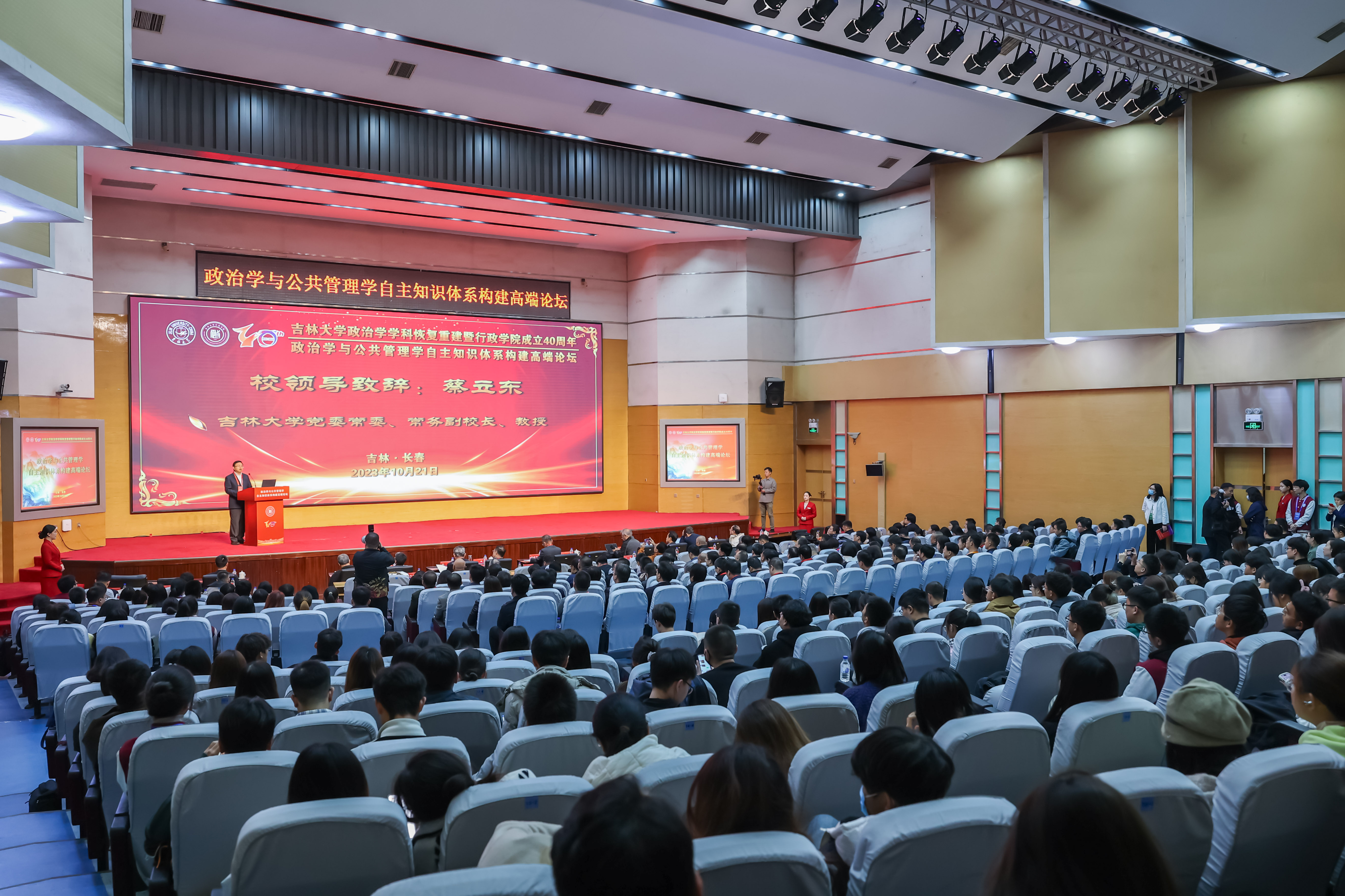 10月21日,行政学院在东荣会议中心举办政治学与公共管理学自主知识体系构建高端论坛。来自政治学与公共管理学的专家学者齐聚一堂,深入交流研讨,共谋发展大计。吉林大学党委常委、常务副校长蔡立东出席高端论坛开幕式并致辞。