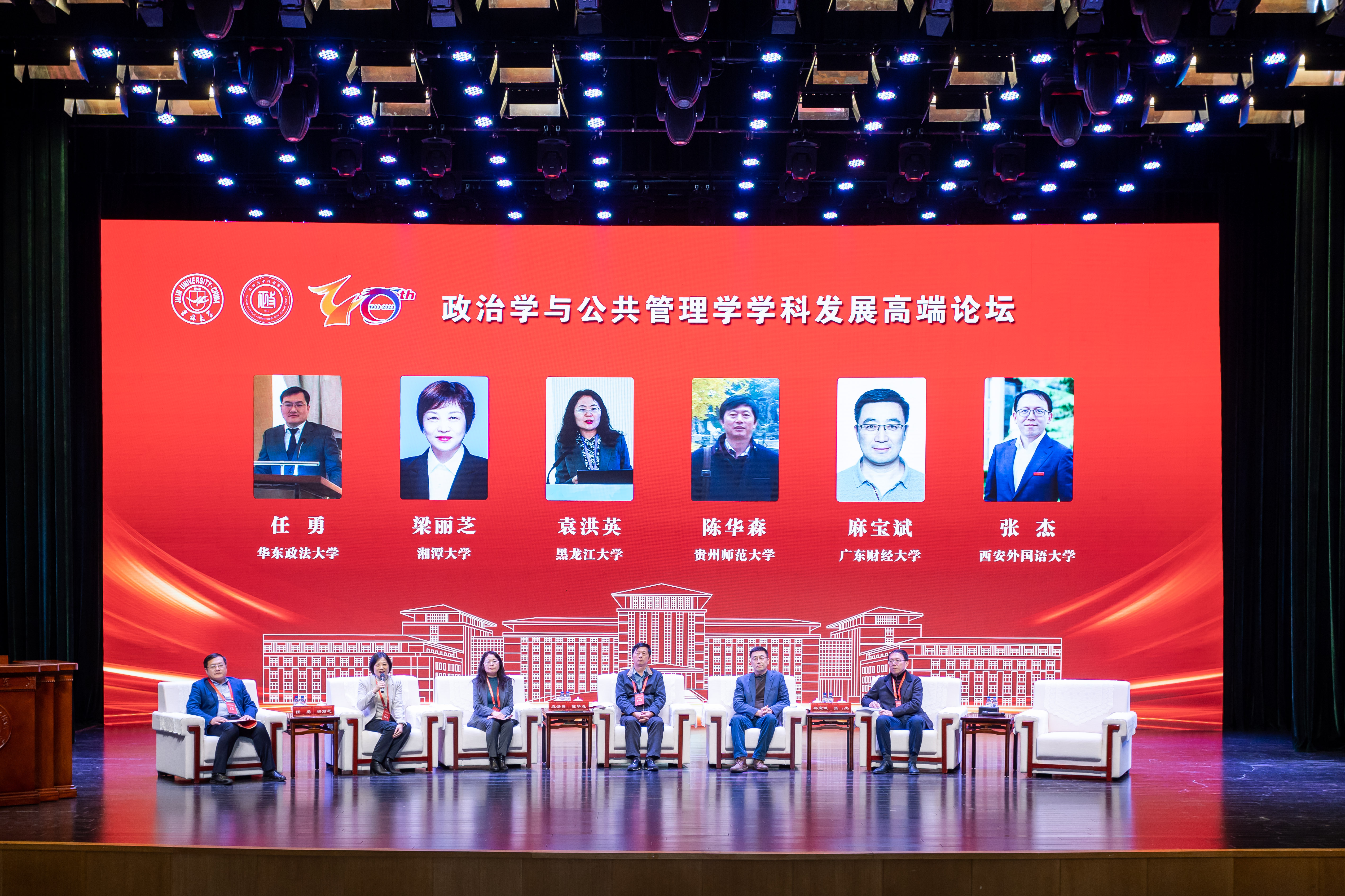 论坛第八组由华东政法大学政府管理学院院长任勇主持。湘潭大学公共管理学院院长梁丽芝细数湘潭大学与吉林大学的渊源,并介绍了湘潭大学的基本情况。黑龙江大学政府管理学院院长袁洪英介绍了黑龙江大学公共管理学院的基本情况,分享了学院建设发展的宏伟目标。贵州师范大学历史与政治学院院长陈华森认为学科建设需要严格过程与产出导向、突出特色与关照全局、立足地方与服务国家、独立自主与开放发展、顶层设计与制度保障“五个结合”相结合。广东财经大学公共管理学院院长麻宝斌从人才培养的角度阐释“学习”的含义,包括学会学习、学会做事、学会生活、学会做人。西安外国语大学国际关系学院院长张杰介绍了西安外国语大学国际关系学院的特色,并指出学生要在主动学习能力、表达与沟通能力、团结协作能力、心态平和能力等方面加以提升。