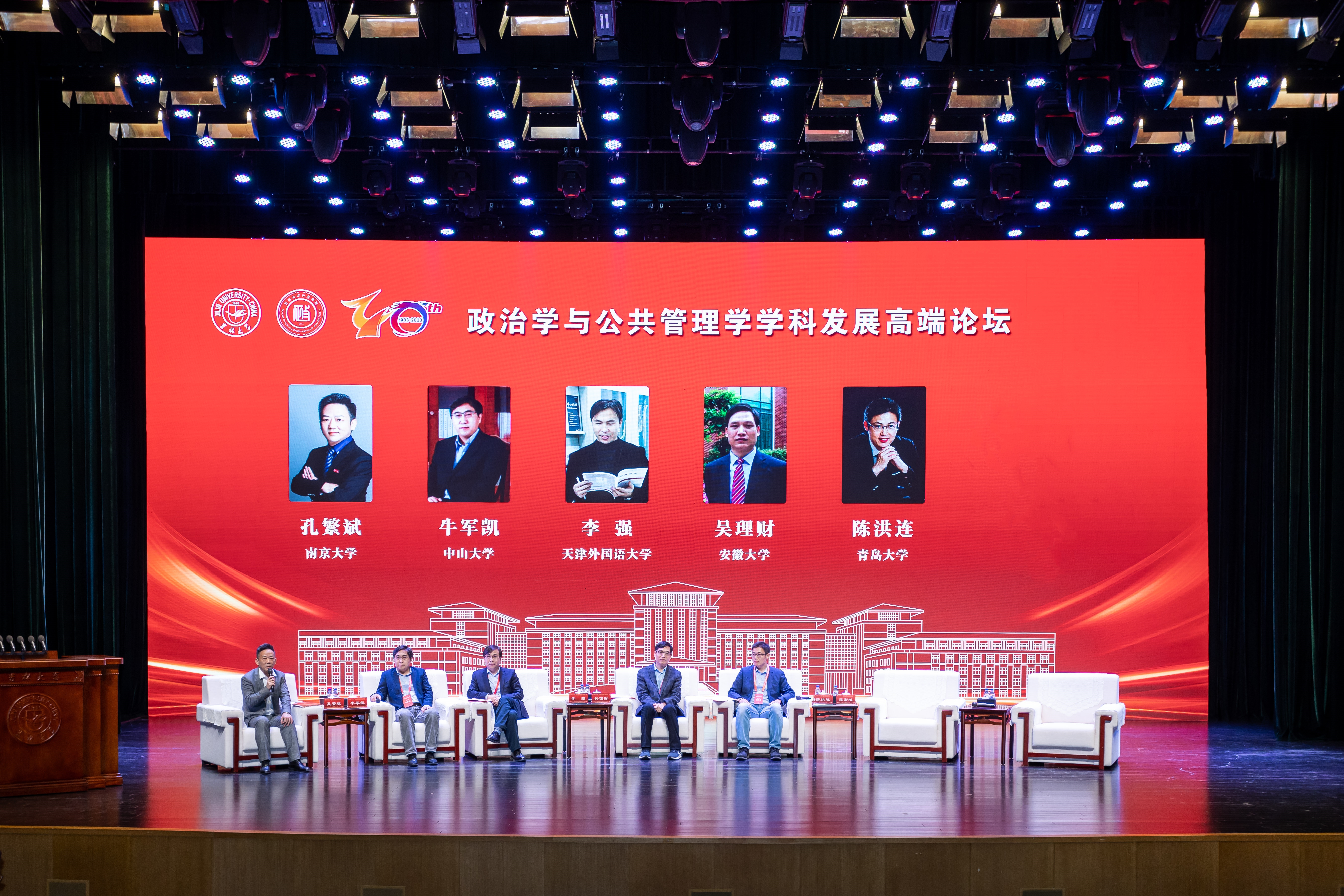 论坛第五组由国家哲学社会科学领军人才、南京大学政府管理学院院长孔繁斌主持。中山大学国际关系学院院长牛军凯表达了对行政学院的祝福与感谢,希望政管学术同仁共同努力,用新的理论去建构和解释区域国别学。天津外国语大学国际关系学院院长李强指出,吉大之大在于文化、胸怀、气度和愿景之大,并表达了对学校与学院事业发展的美好祝愿。安徽大学社会与政治学院院长吴理财就行政学院的发展分享感受和体会,对行政学院未来事业蒸蒸日上表示期待。青岛大学政治与公共管理学院/纪检监察学院院长陈洪连认为,吉大政治和公共管理学发展态势良好、成绩突出,值得业界同行关注和相互学习。