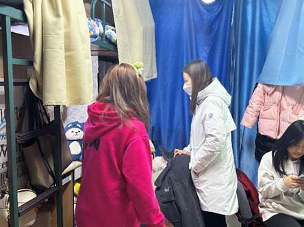 本次安全卫生检查覆盖学院全部寝室。检查过程中,史慕华、张洁与学生们亲切交流,了解同学们返校后的生活状况,以及新学期的学习计划,勉励同学们在努力学习、拼搏向上的同时,注重劳逸结合,保持身心健康。辅导员们仔细检查了寝室的卫生及用电安全,特别关注了是否存在违章电器、私拉电线等安全隐患,并督促大家提升安全和卫生意识,要求同学们认真打扫卫生,及时清理垃圾,保持宿舍干净,注意通风消毒,小心预防春季传染病,共同创造安全、健康、有序的生活环境。