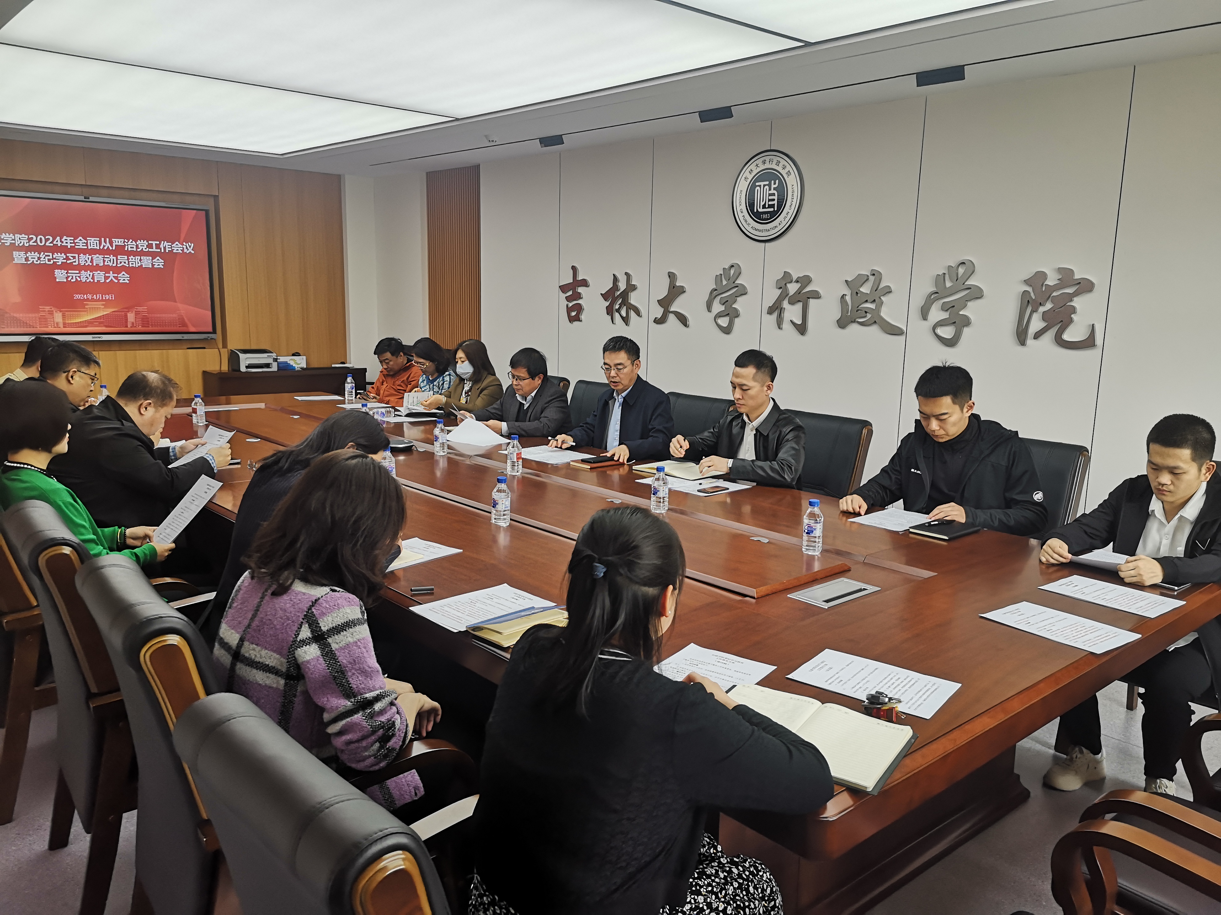 4月19日,行政学院在东荣大厦A307室以党委(扩大)会议形式召开2024年全面从严治党工作会议暨警示教育会议,并启动部署党纪学习教育。学院党委委员、纪委委员、党支部书记、系主任、学生代表等参加会议。学校党建工作联络员许广华列席指导,学院党委书记陈希贵主持会议。