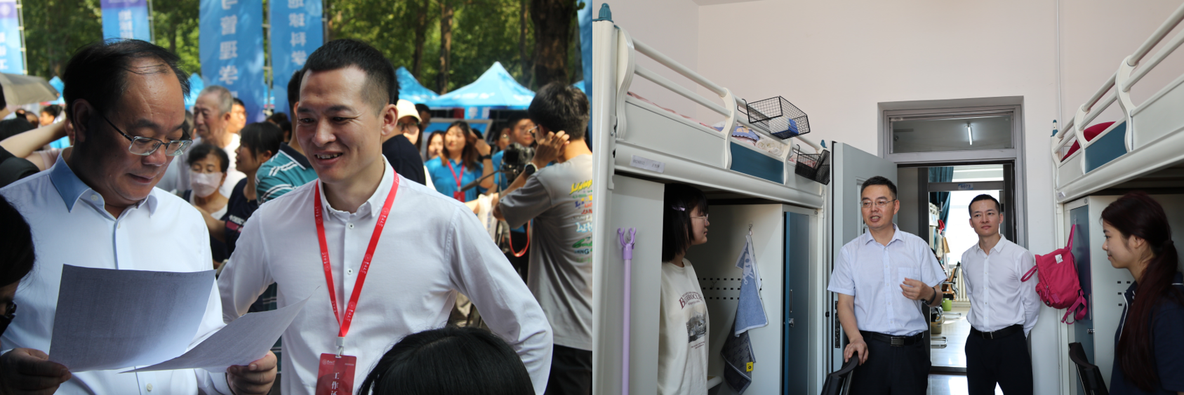 学校领导及相关职能部门负责同志对学院迎新工作给予肯定和大力支持,并在走访期间关心学院发展建设,同恰巧报到的新同学及其家长亲切合影。张贤明详细了解了2024级新生生源情况,向迎新工作人员表示问候。陈希贵逐一走进本科寝室看望新生,交谈间为大家展开了大学生生活的美好图景。