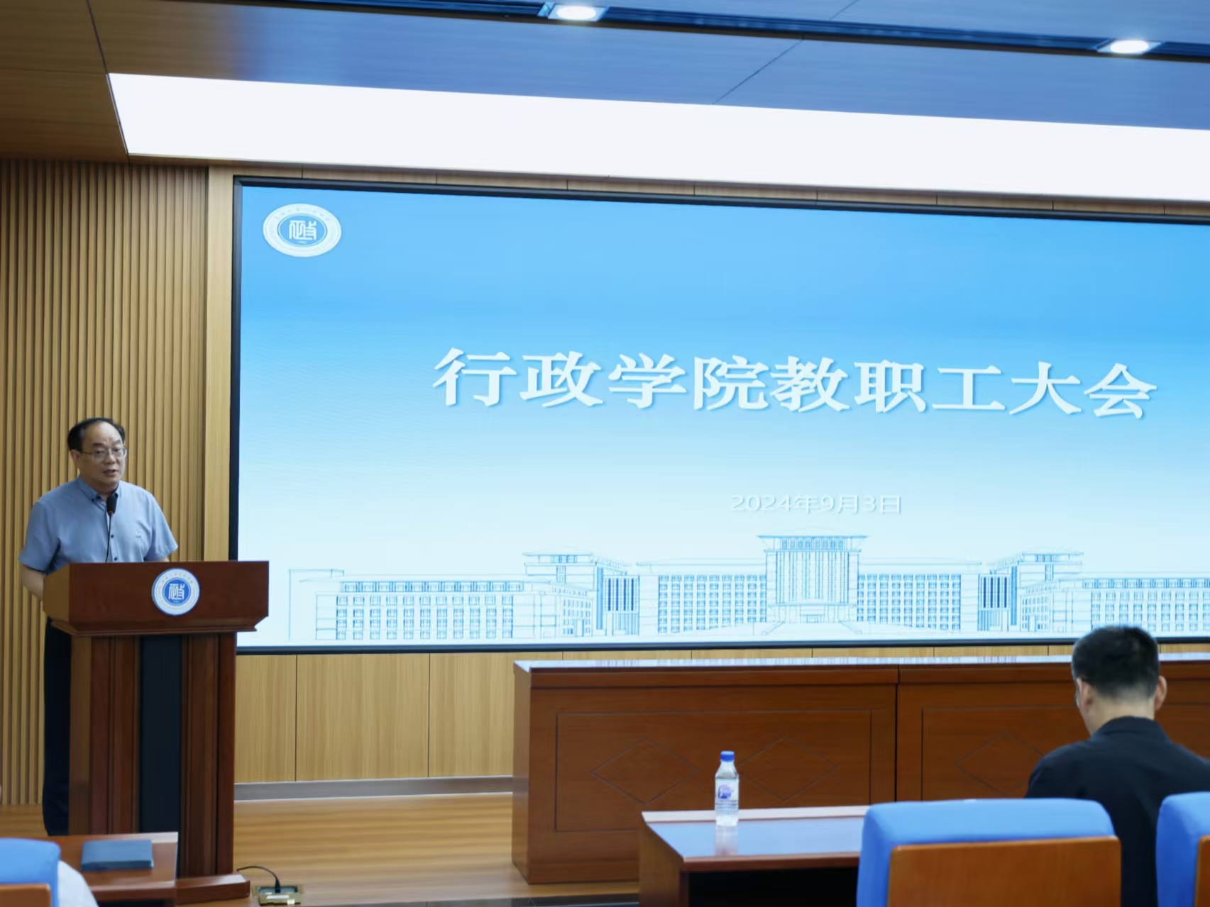 9月2日下午,行政学院在东荣大厦B102报告厅召开2024年下半年全院教职工大会,院领导班子全体成员和全院教职工参加会议。会议由院长张贤明教授主持。