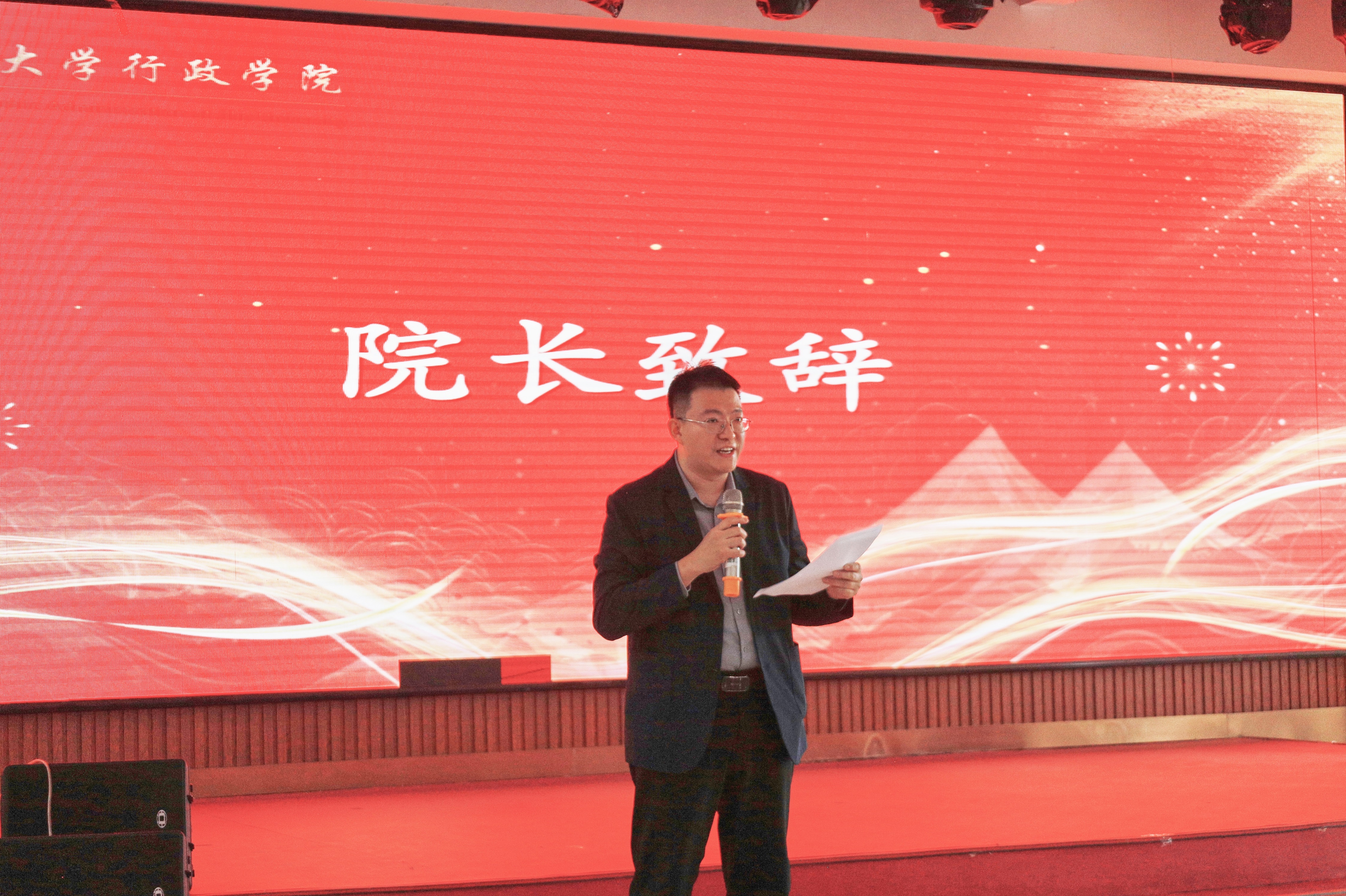 行政学院院长马雪松代表学院领导班子致辞。他回顾了学院一年来各项工作取得的进展和成效。2024年,行政学院坚持以习近平新时代中国特色社会主义思想为指导,全面贯彻党的二十届三中全会和全国教育大会精神,怀揣着对学院高质量发展、学科高水平建设、学者高标准聚力、学生高规格培养的坚定信念,主动响应国家重大战略需求,积极弘扬厚重包容、守正创新的学术传统,着力落实文科振兴计划,推进工作机制综合改革,以天下为公的使命担当、立德树人的执着坚守、从严务实的勤勉作风、斗志昂扬的奋进姿态,一次次取得优异业绩,一次次探索学术新篇。最后,马雪松对全体教师2024年度的辛勤付出与无私奉献表示感谢,并向学院全体教职工致以诚挚的新年祝福。