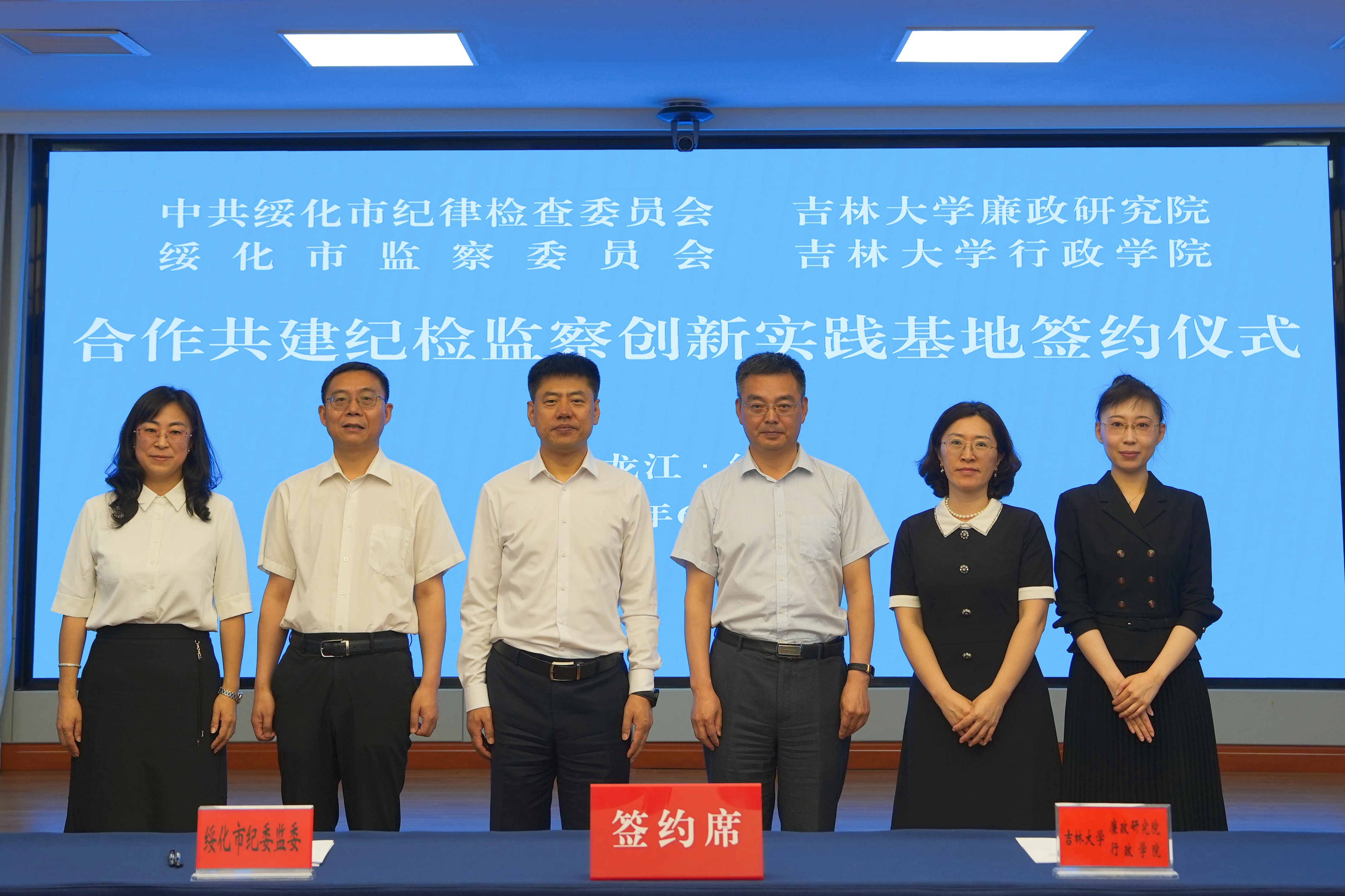 2025年6月26日,吉林大学行政学院、廉政研究院与绥化市纪委监委在黑龙江省绥化市举行“纪检监察创新实践基地”合作共建协议签约仪式。吉林大学行政学院党委书记陈希贵,党委副书记史慕华,副院长、廉政研究院院长刘畅,绥化市委常委、市纪委书记、市监委主任张铁民及当地纪检监察系统相关负责人共同出席。仪式由张铁民主持,双方代表签署共建协议,标志着“纪检监察创新实践基地”正式落地。