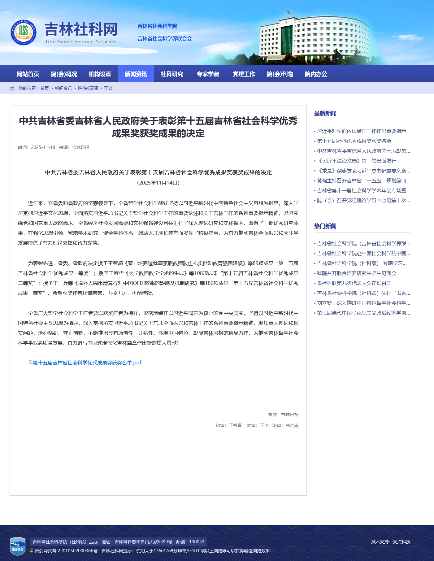 近日,中共吉林省委、吉林省人民政府发布《中共吉林省委吉林省人民政府关于表彰第十五届吉林省社会科学优秀成果奖获奖成果的决定》,吉林大学行政学院共有7项成果荣获各类各级表彰。