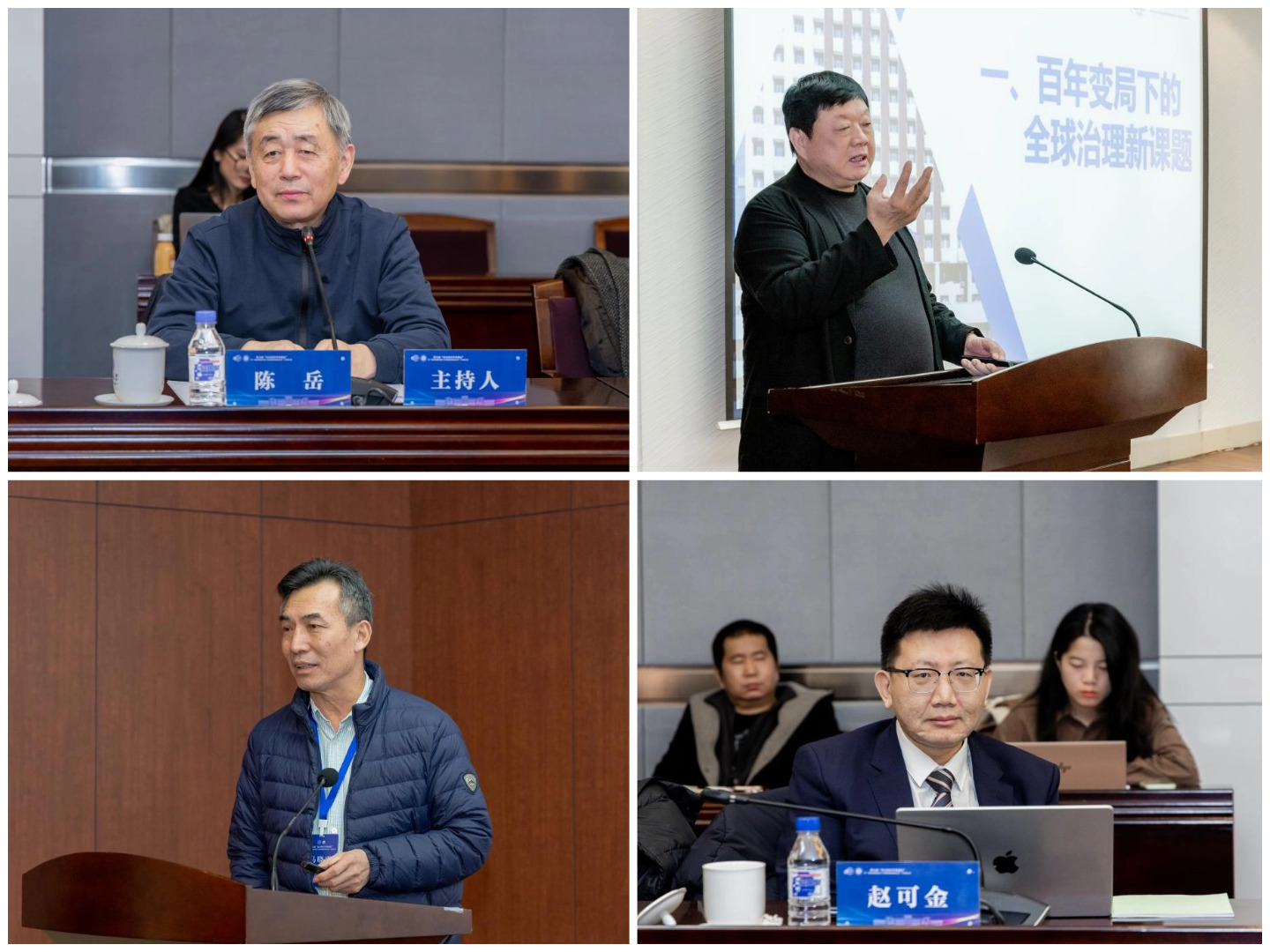 对外经济贸易大学国家安全与治理研究院/国际关系学院院长戴长征教授以《走向人类命运共同体:全球治理倡议的理论价值、现实意义与有效实践》为题发言,指出要以马克思主义中国化、时代化为根基,形成相互贯通的完整理论体系,并对西方主导的国际关系理论形成超越。浙江外国语学院环地中海研究院院长马晓霖教授以《国际体系与国际格局的变化》为题发言,指出当今国际体系正处于“权力转移、制度重构与观念竞争”的深刻变革期,呈现“碎片化”与“再中心化”并行态势;自由主义国际秩序面临发展模式、技术伦理、历史正义和社交媒体舆论战的多重冲击。清华大学全球共同发展研究院副院长、清华大学社会科学学院赵可金教授以《生态制度主义政治学的学术空间》为主题发言,阐释其“生态制度主义政治学”理论框架,认为应以生态而非权力、利益或话语作为理解政治与生活的底层逻辑起点,依据“生态—秩序—制度”三个标志性概念来把握政治运行的基本结构。