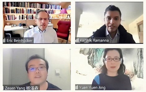 第二场研讨的主题是“疫情防控和疫后重建”。牛津大学埃里克·拜因霍克(Eric Beinhocker)教授分析了向清洁能源转型的成本与前景。牛津大学卡西克·拉曼那(Karthik Ramanna)教授介绍了新型碳排放核算方式和机制的内容与应用前景。清华大学博士生杨泽森分析了中国共产党的组织力和抗疫实践之间的关系,他运用量化分析方法研究发现,政党的组织力对中国和其他国家抗击新冠疫情的效能具有显著作用。美国密歇根大学洪源远(Yuen Yuen Ang)副教授介绍和分析了全球民众疫情认知的社会调查结果。