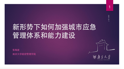 2021年12月9日上午,吉林大学行政学院与吉林大学中国地方政府创新研究中心共同主办的吉林大学庆祝建校75周年系列学术活动暨第13期名家讲座以视频会议方式线上举行。南京大学政府管理学院副院长、江苏省社会风险管理研究基地执行主任张海波教授应邀担任主讲嘉宾,作题为“新形势下如何加强城市应急管理体系和能力建设”的学术讲座。行政学院公共管理系王庆华教授主持讲座,行政学院副院长、吉林大学中国地方政府创新研究中心主任刘雪华教授莅临并致欢迎词,行政学院部分教师、研究生、本科生及国内其他高校师生共六十余人参加此次讲座。