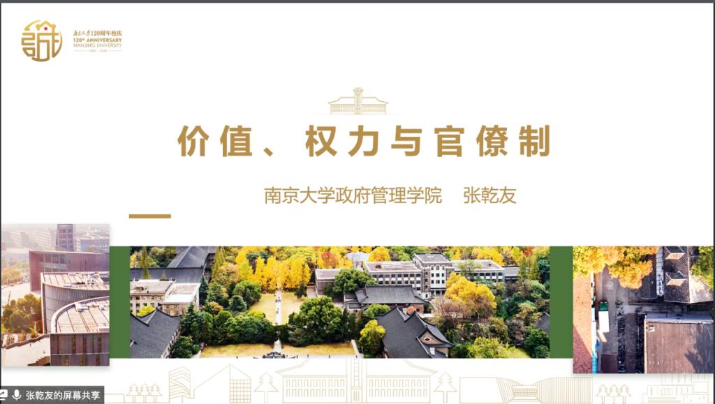 2022年3月29日晚间,吉林大学行政学院主办的为公论坛第36期学术活动在腾讯会议平台举行。本次论坛邀请南京大学政府管理学院教授、博士生导师张乾友老师担任主讲嘉宾,讲授对于“价值、权力与官僚制”这一主题的最新研究心得。吉林大学行政学院薛洁教授、王立峰教授、董伟玮副教授、李慧杰老师,体育学院沈笛老师,中国人民大学魏素豪博士及部分国内高校公共管理、政治学专业研究生、本科生160余人参与工作坊。本期论坛由吉林大学行政学院副院长马雪松教授主持。