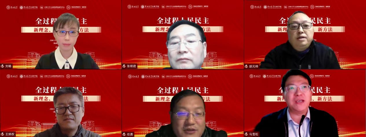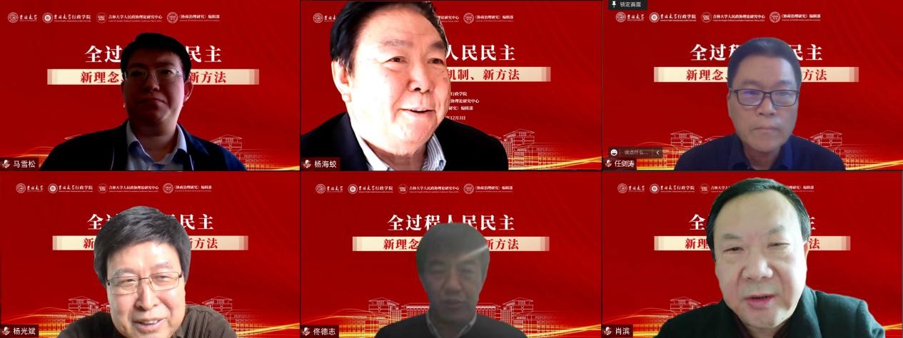 2022年12月3日,吉林大学行政学院、吉林大学人民政协理论研究中心、《协商治理研究》编辑部、吉林大学“中国式民主:人类政治文明新形态研究”哲学社会科学研究创新团队联合主办的“全过程人民民主新理念、新机制、新方法”学术研讨会以线上视频会议方式成功举行。来自中国社会科学院、清华大学、中国人民大学、天津师范大学、中山大学、上海交通大学、新华文摘杂志社、中国社会科学院大学、华东政法大学、吉林大学的10余名专家学者参会并作主题研讨。