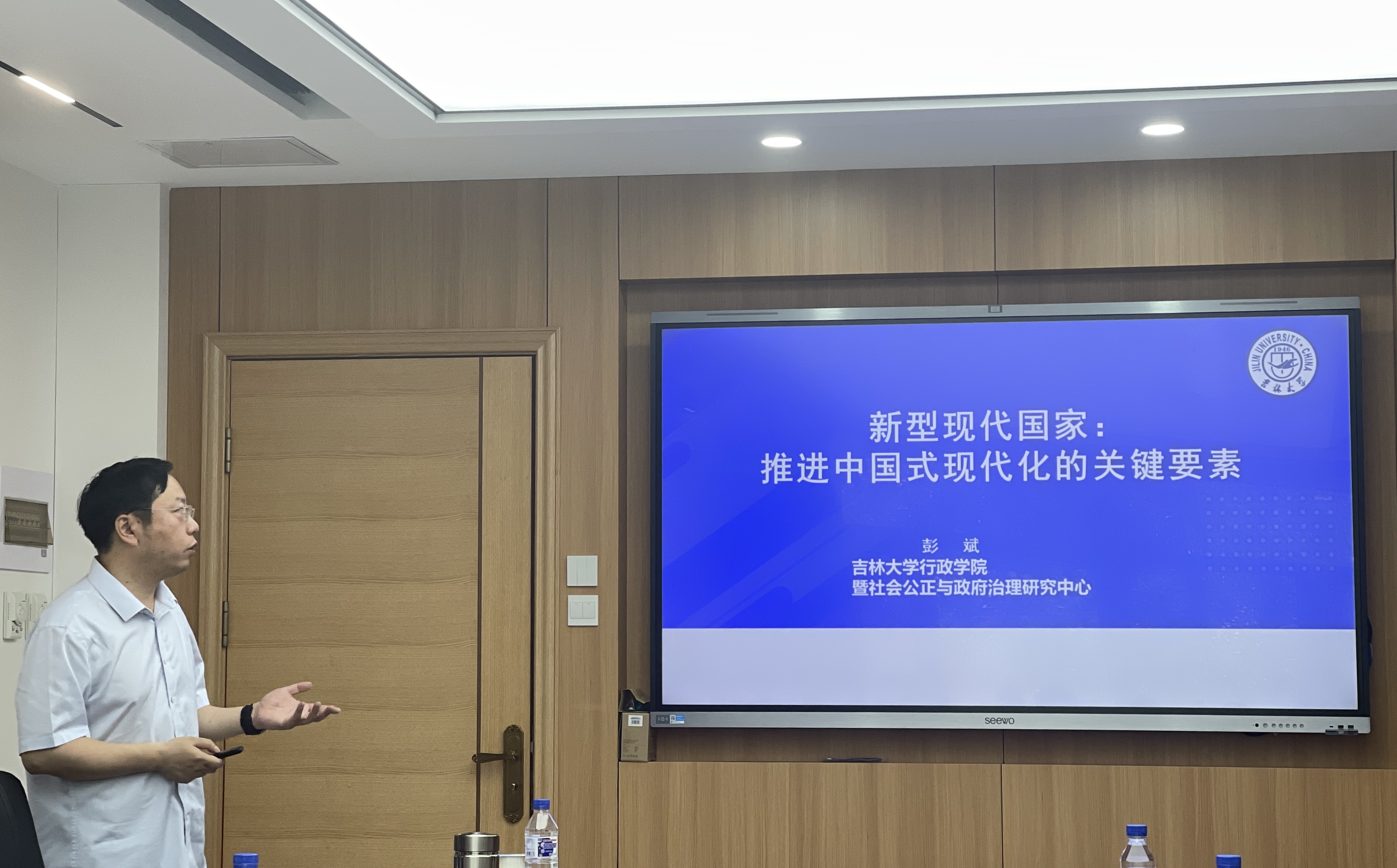 2023年6月8日,吉林大学行政学院“政午同行”青年教师学术沙龙第19期活动以午餐交流会形式召开。政治学系彭斌教授应邀担任本期沙龙引谈嘉宾,以“新型现代国家:推进中国式现代化发展的关键因素”为题作引谈发言。薛洁老师、王立峰老师、田玉麒老师以及部分博士生和硕士生参与交流。本期沙龙由行政学院副院长马雪松老师主持。