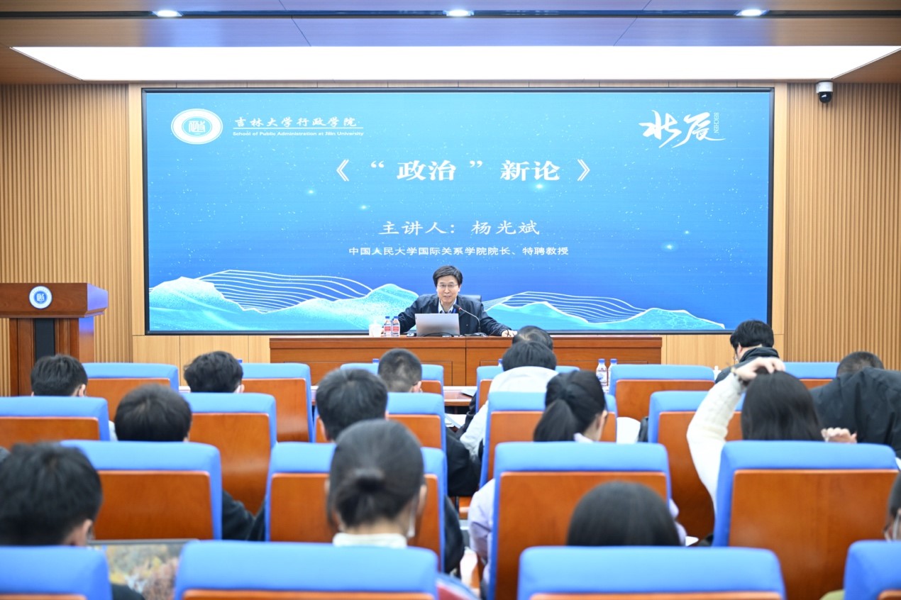 2023年11月27日上午,吉林大学社会科学研究院、吉林大学行政学院共同主办的吉林大学哲学社会科学学术讲座暨吉林大学行政学院王惠岩学术讲座(第13期),在吉林大学人民政协理论研究中心报告厅举办。中国人民大学国际关系学院院长杨光斌教授应邀担任主讲嘉宾,作题为“‘政治’新论”的学术讲演。行政学院副院长刘雪华教授主持讲座,学院教师及本科生、研究生一百余人参加讲座。