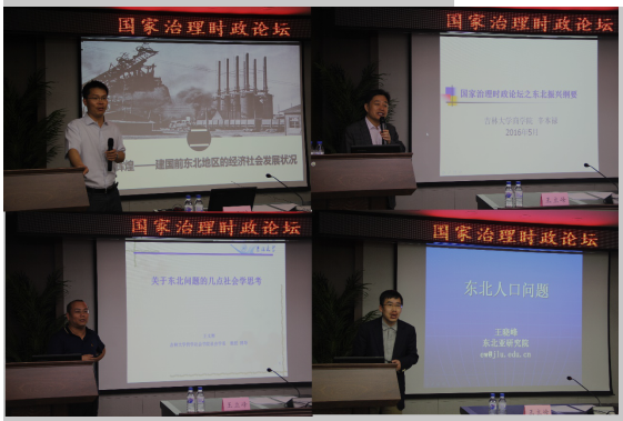 本期论坛主题为“东北问题!东北问题?东北脱困之路在何方?”。主持人行政学院王立峰教授与受邀的东北亚研究院商学院辛本禄教授、哲学社会学院王文彬教授、东北亚研究院王晓峰教授三位嘉宾围绕东北问题,共同探讨了东北振兴的困境和出路。来自行政学院、法学院、马克思主义学院的本科生及研究生参与了此次学术活动。
